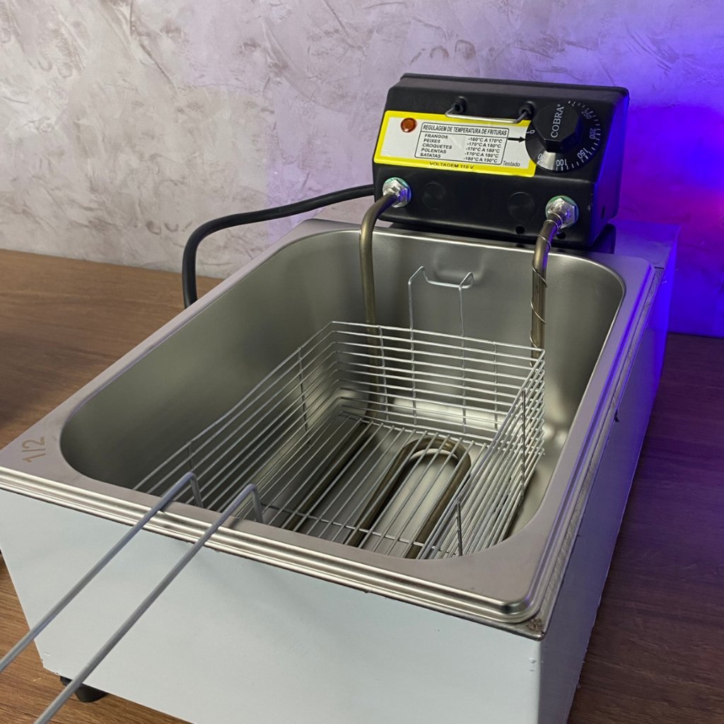 Fritadeira de Pastel Elétrica Cuba 5 Litros Com Escorredor de Óleo Fritura e Escumadeira Inox Profissional Pastelaria