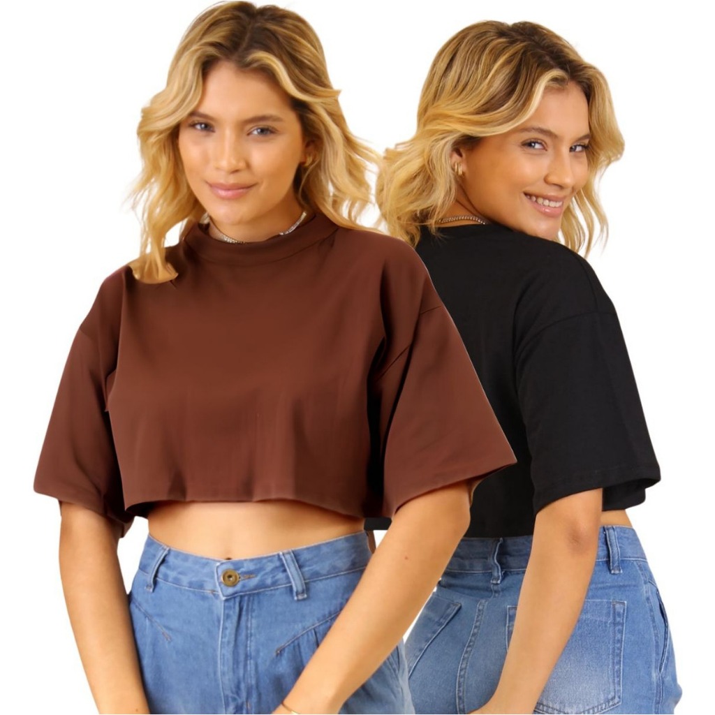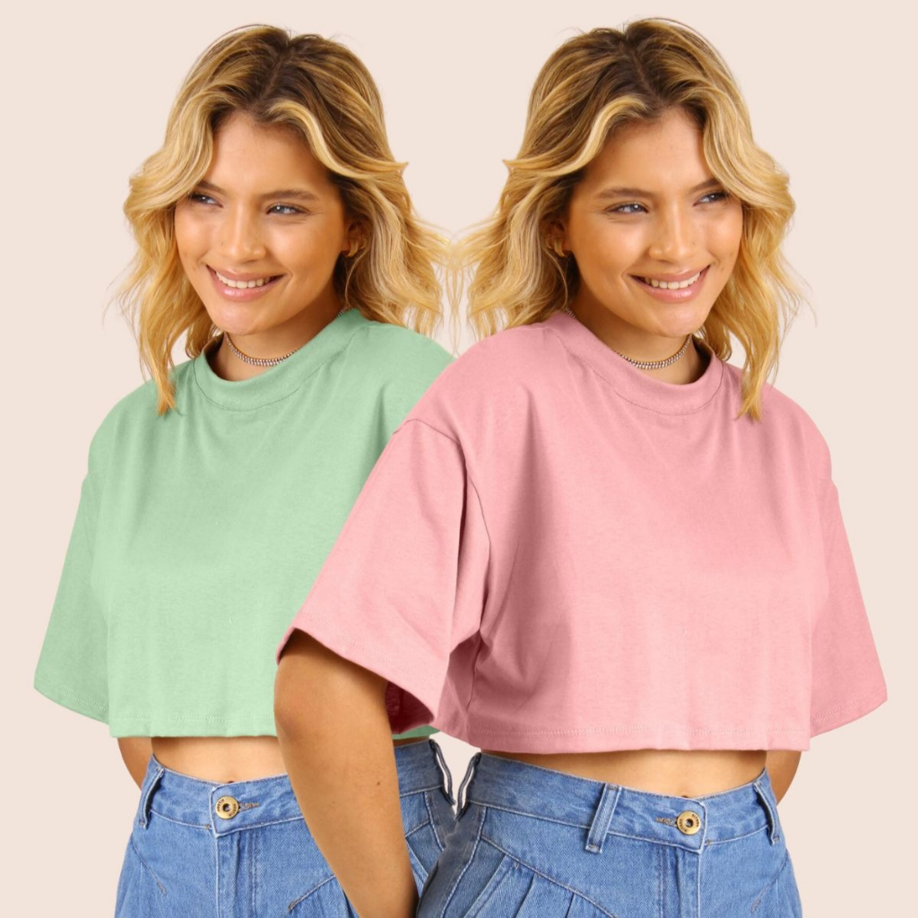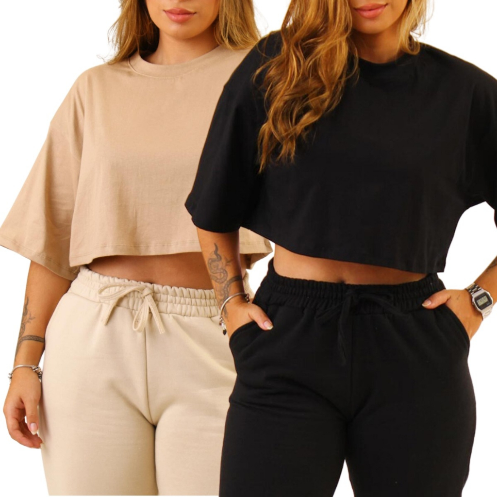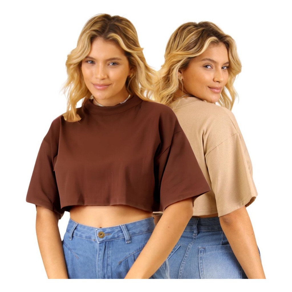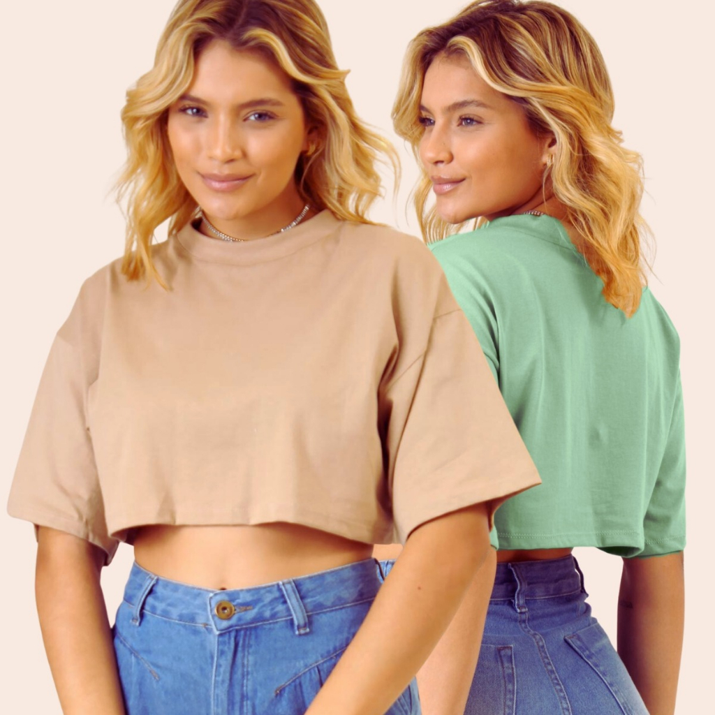 Kit 2 T shirt Cropped Feminina Confortável Básica Leve Camiseta Manga Curta