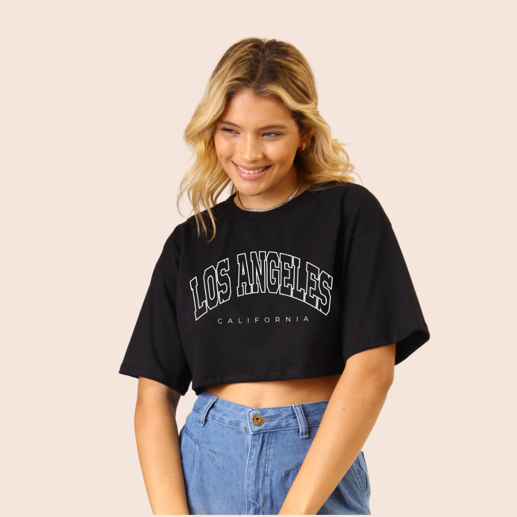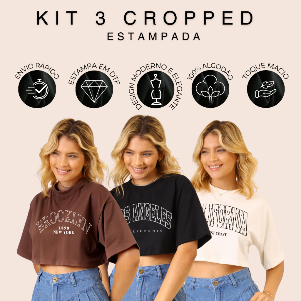 Kit 3 Camiseta Cropped Algodão Oversized Estampada Estilosa