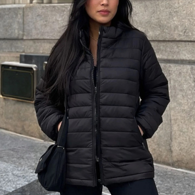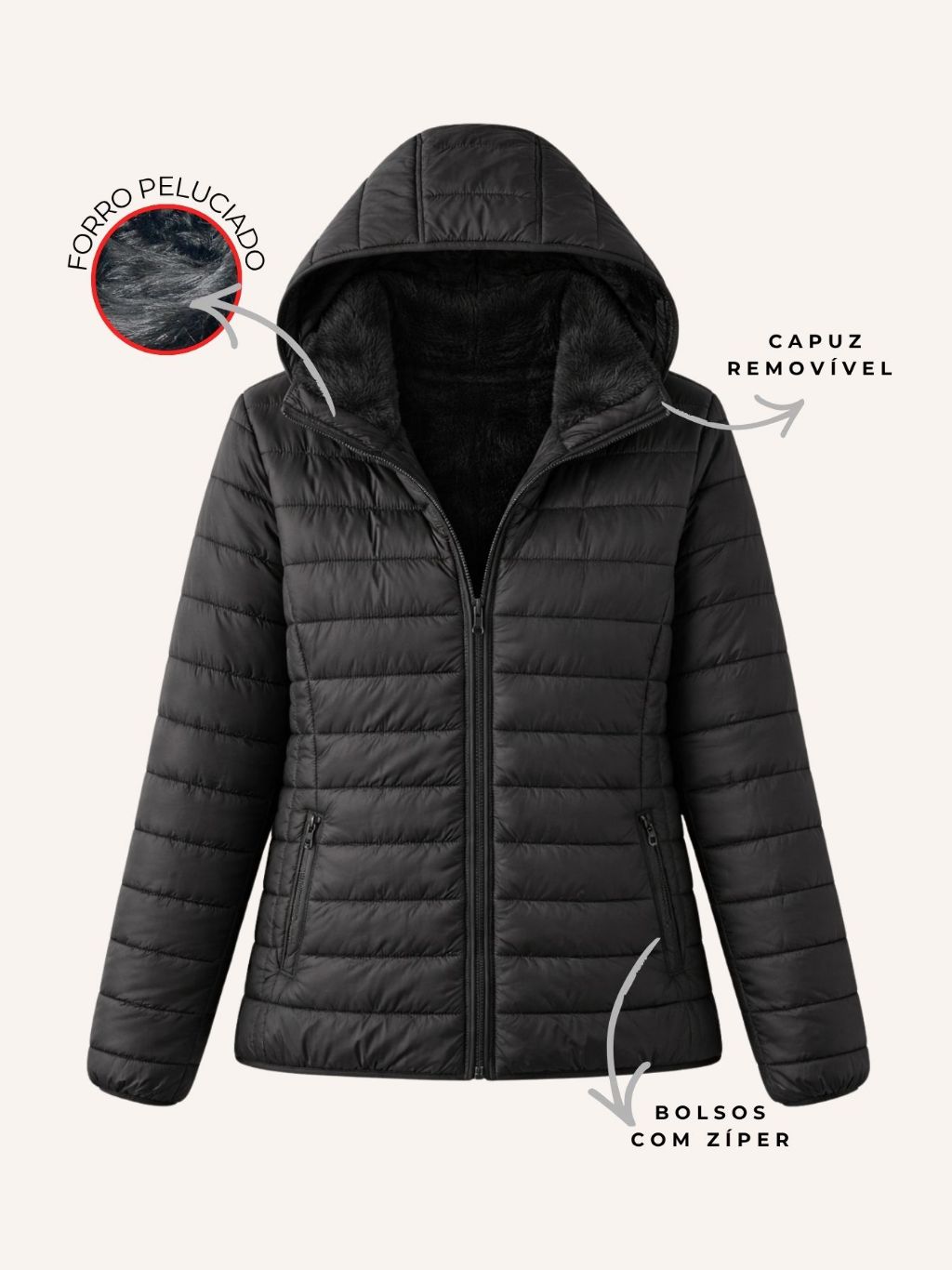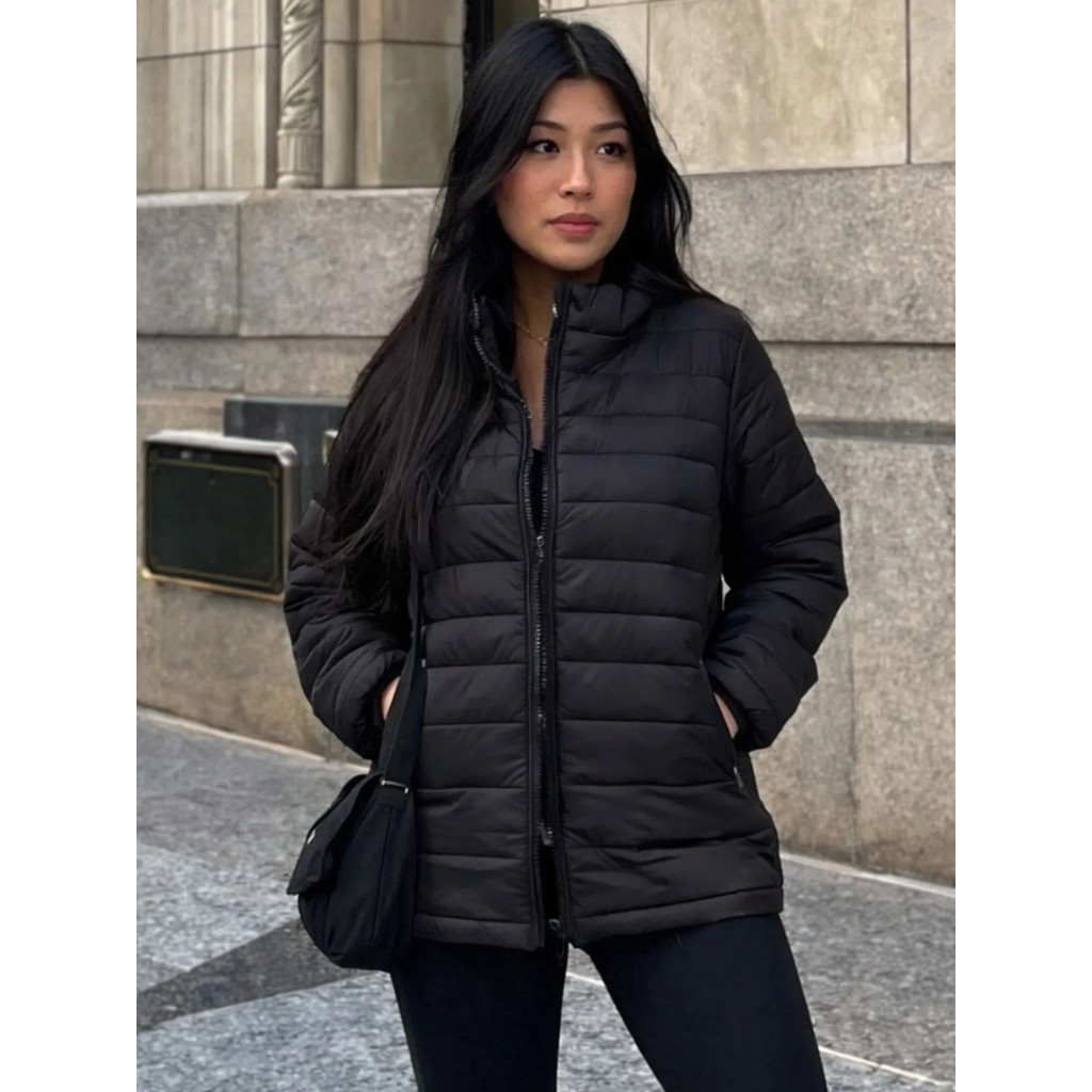 Jaqueta Feminina Puffer Casaco Forrado Bobojaco Capuz Removível
