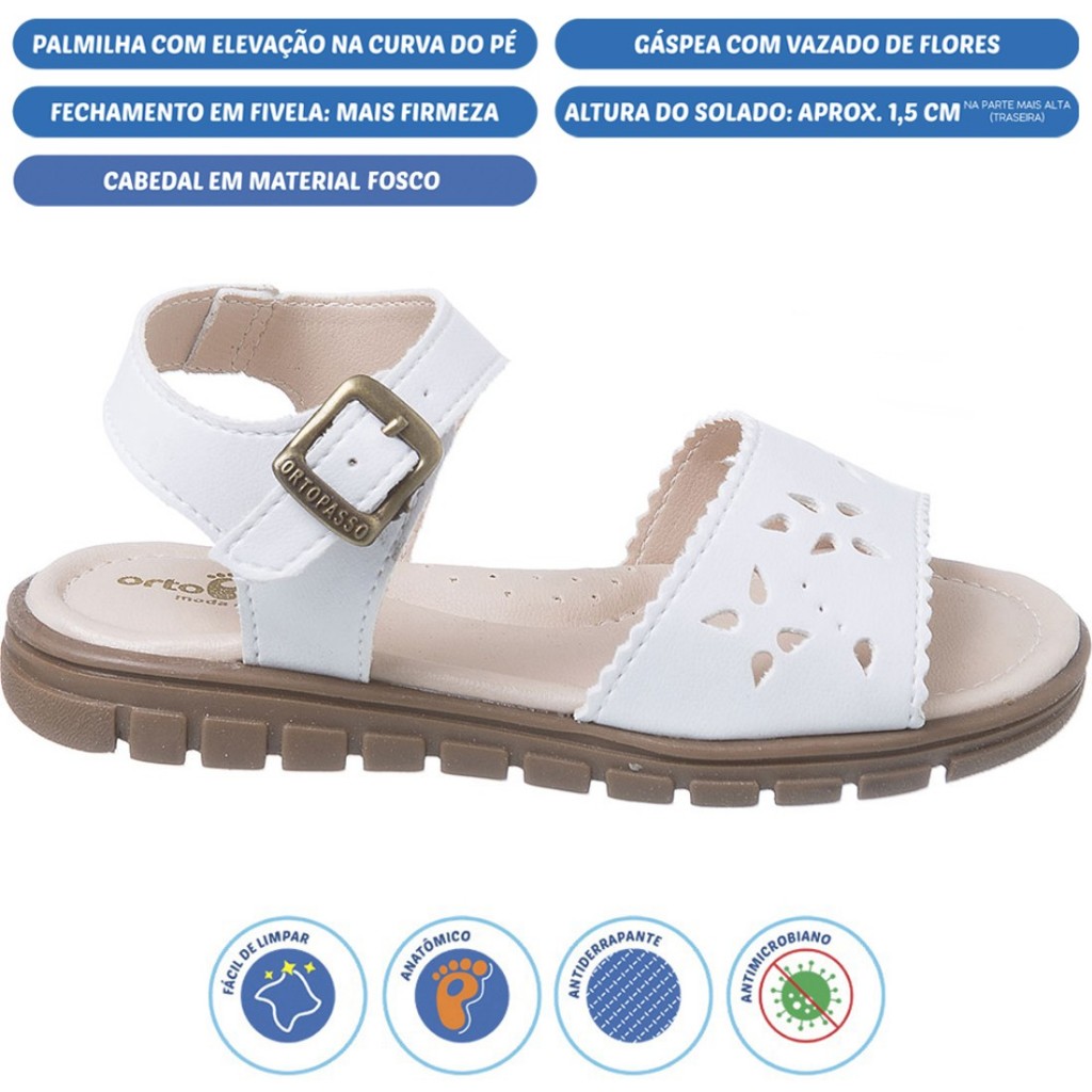 Sandália Sandalha Infantil Ortopasso Anatômica Básica Casual Escolar Menina Feminina Branco