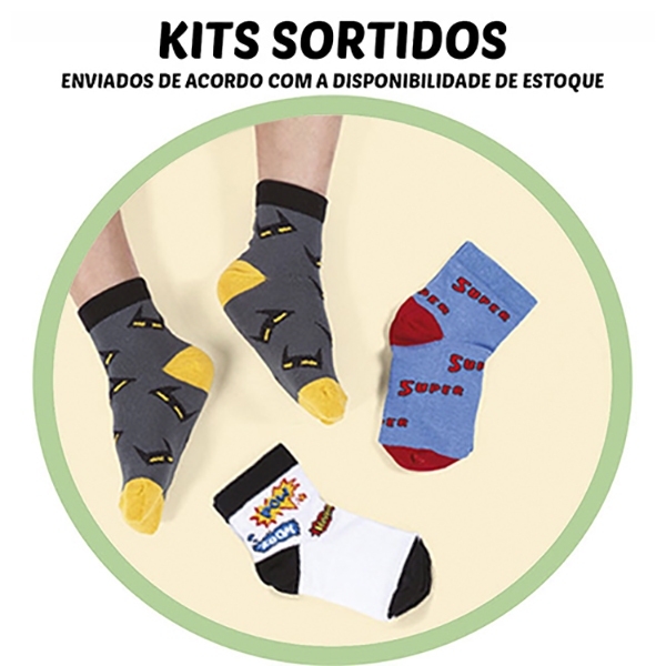 Kit Meias Meninos Heróis Criança Conjunto