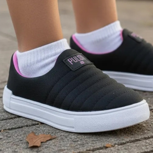 Tênis Infantil Ortopasso Jogging Menina Feminino Preto Escolar Confortavel Conforto Sola Reta