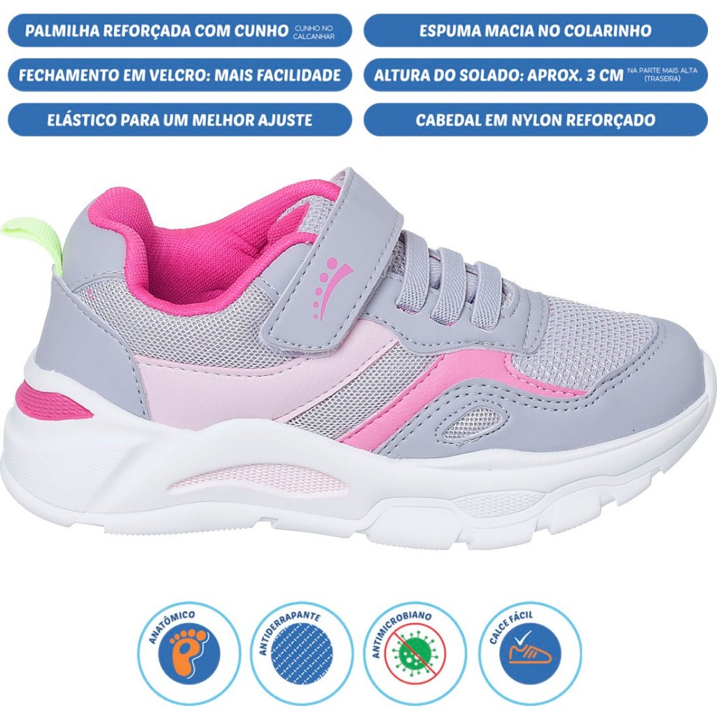 Tênis Infantil Ortopasso Wave Menina Azul Marinho Cinza