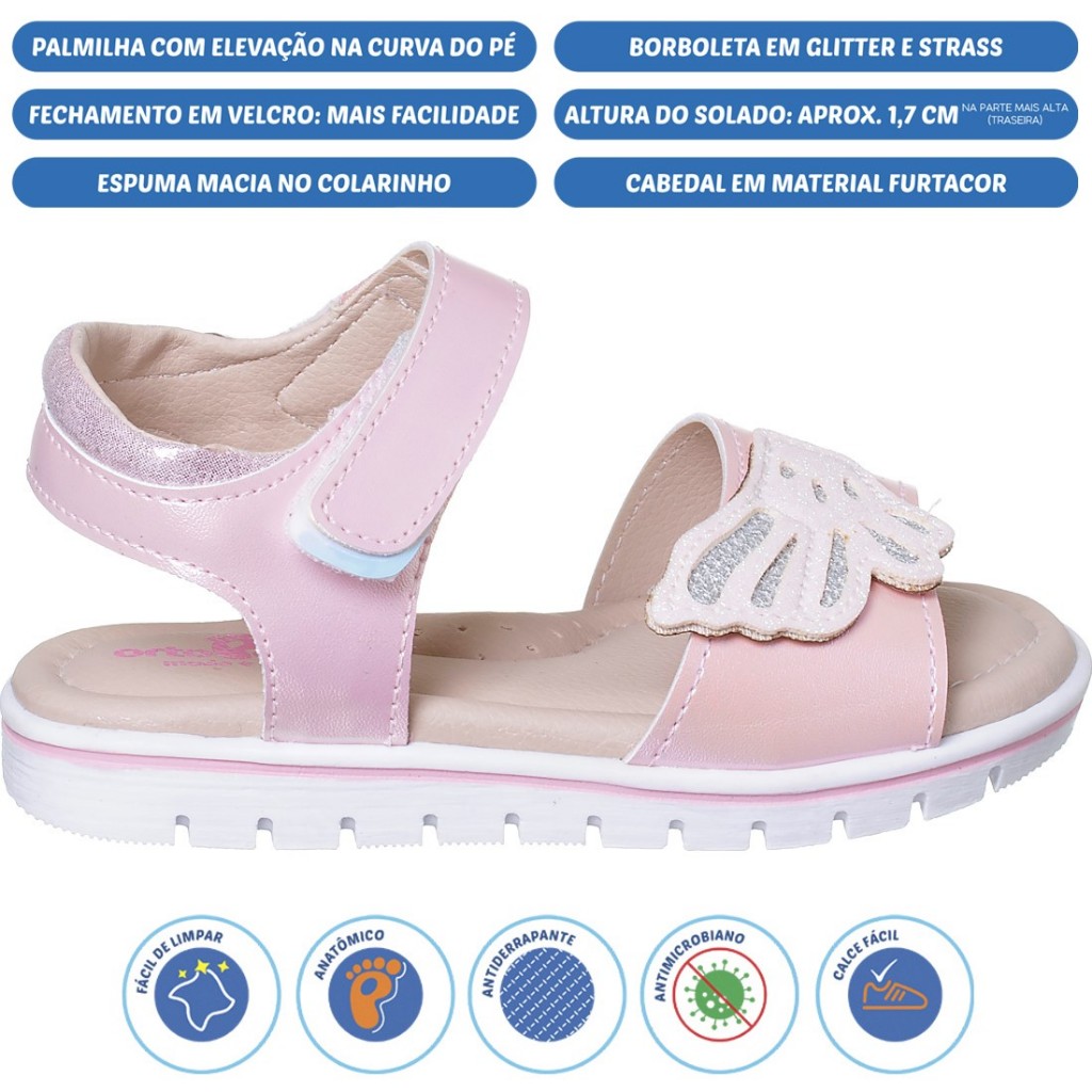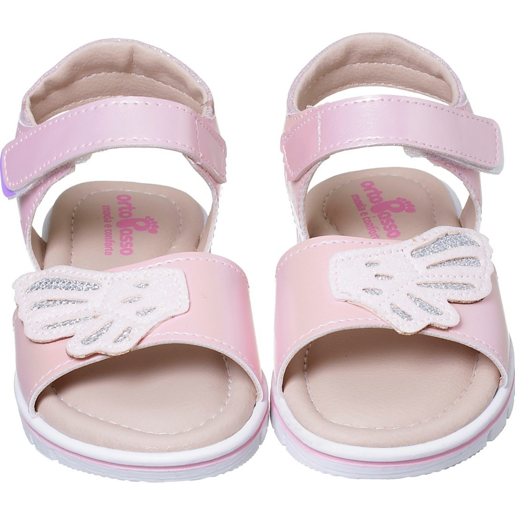 Sandália Infantil Ortopasso Cinderela Menina Asa Glitter Velcro Confortável Conforto