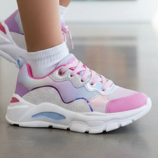 Tênis Infantil Ortopasso Wave Menina Cadarço Fashion Glitter
