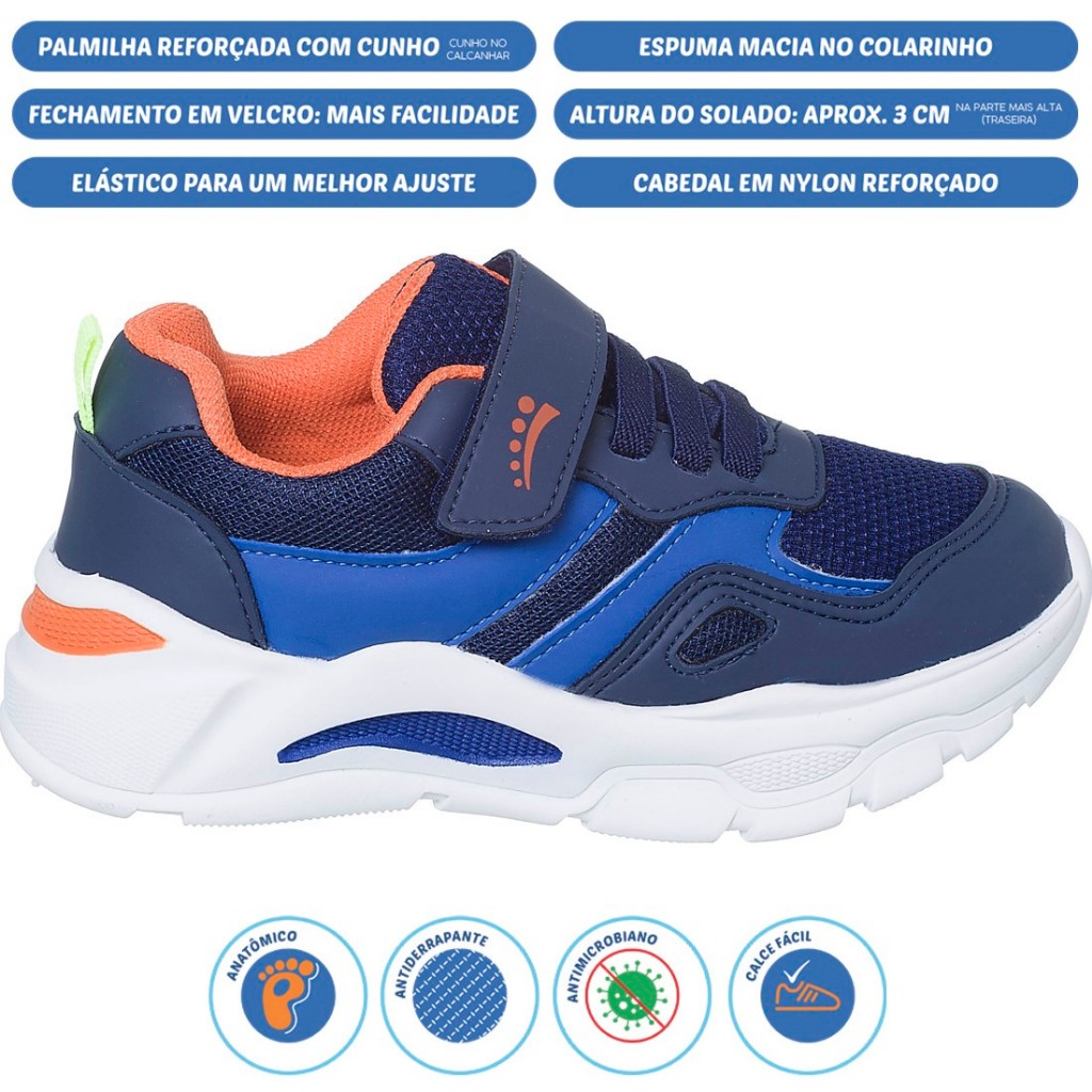Tênis Infantil Masculino Ortopasso Wave Menino Azul Marinho Cinza