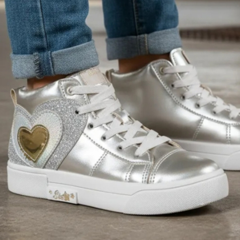 Tênis Infantil Ortopasso New Stars Menina Cano Alto Coração Sola Reta Cadarço Feminino 28 ao 36