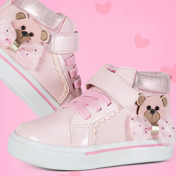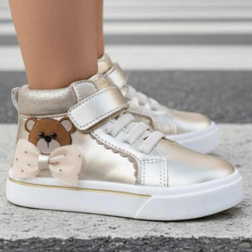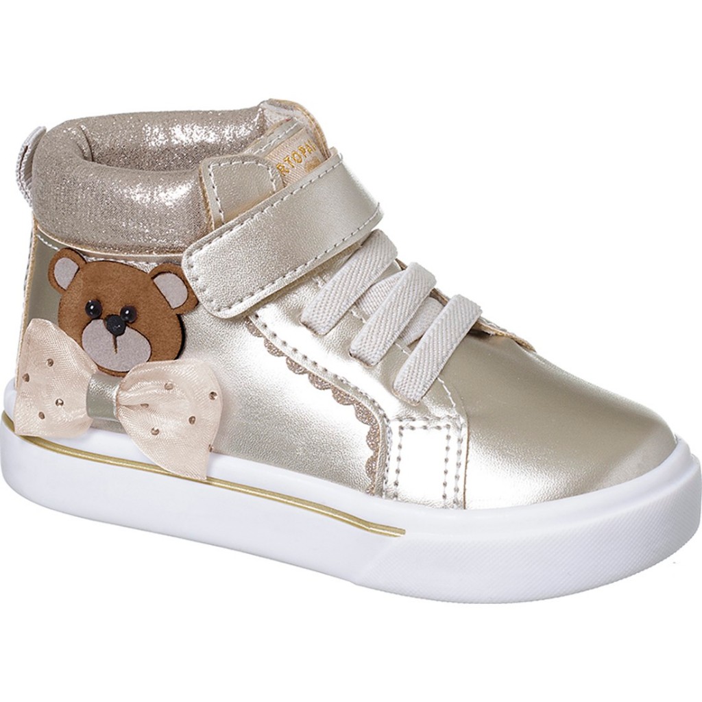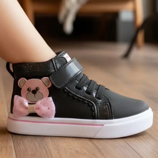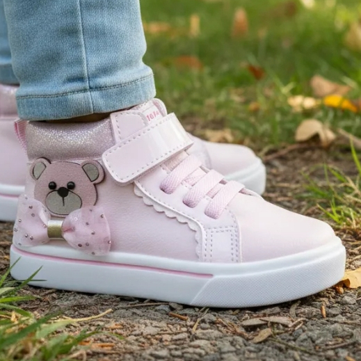 Tênis Infantil Ortopasso Happy Menina Cano Alto Sola Reta Macia Leve Confortável Urso Laçinho