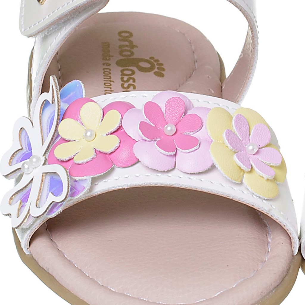 Sandália Infantil Ortopasso Flowers Eco Menina Bebê Florzinha Borboleta Coração Macia Leve Sola Reta