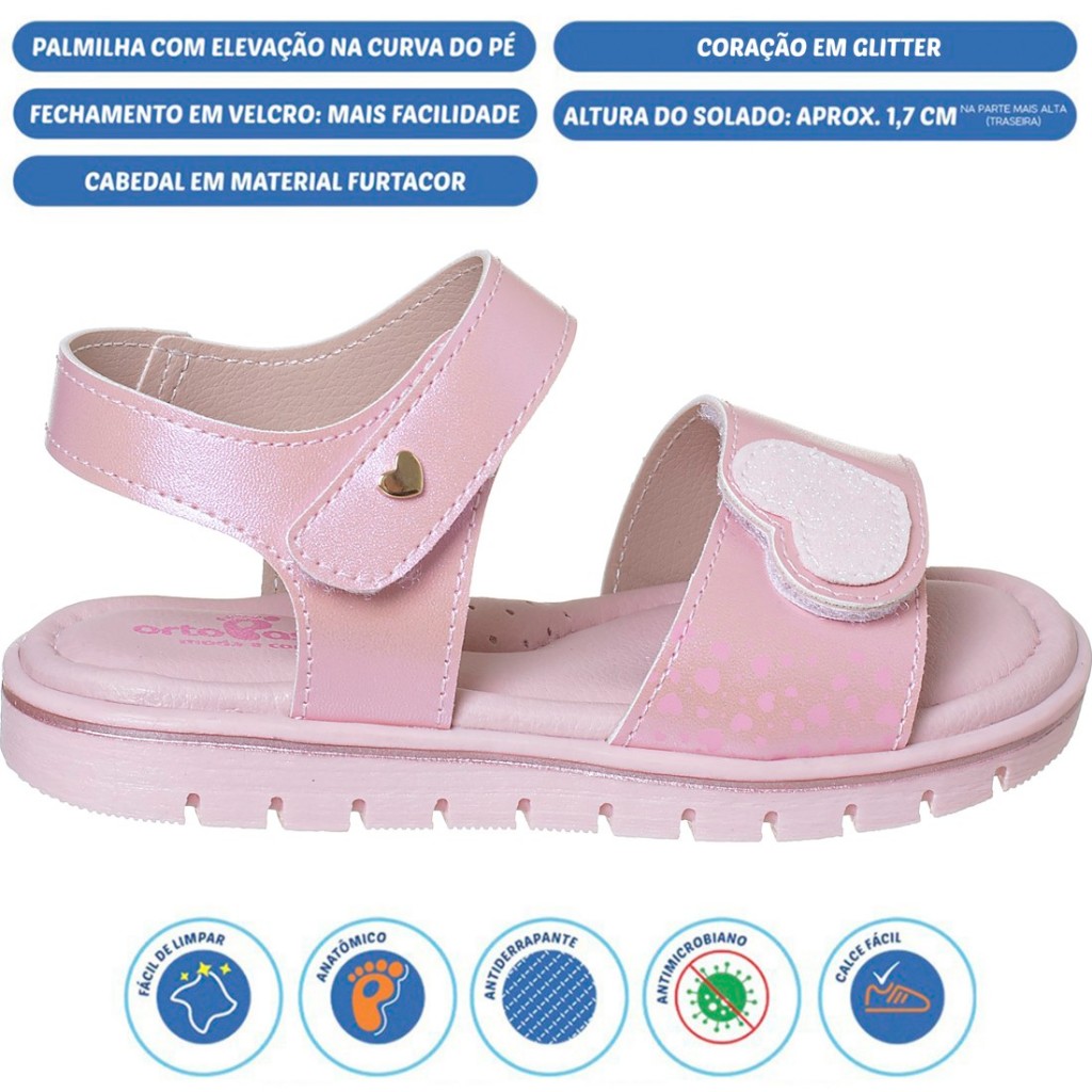 Sandália Infantil Ortopasso Cinderela Menina Coração Sola Antiderrapante Fashion Fashionista Macio