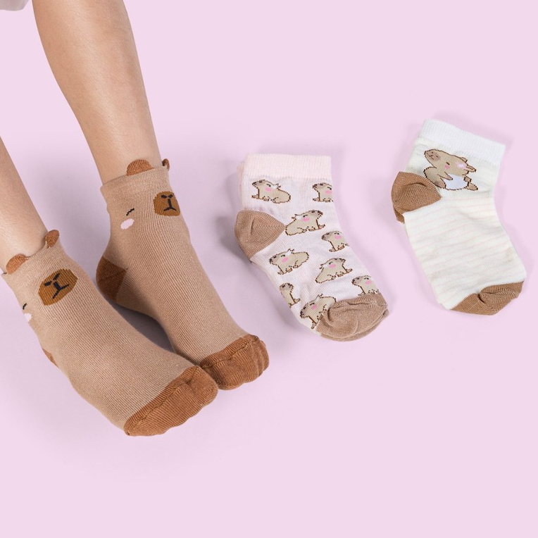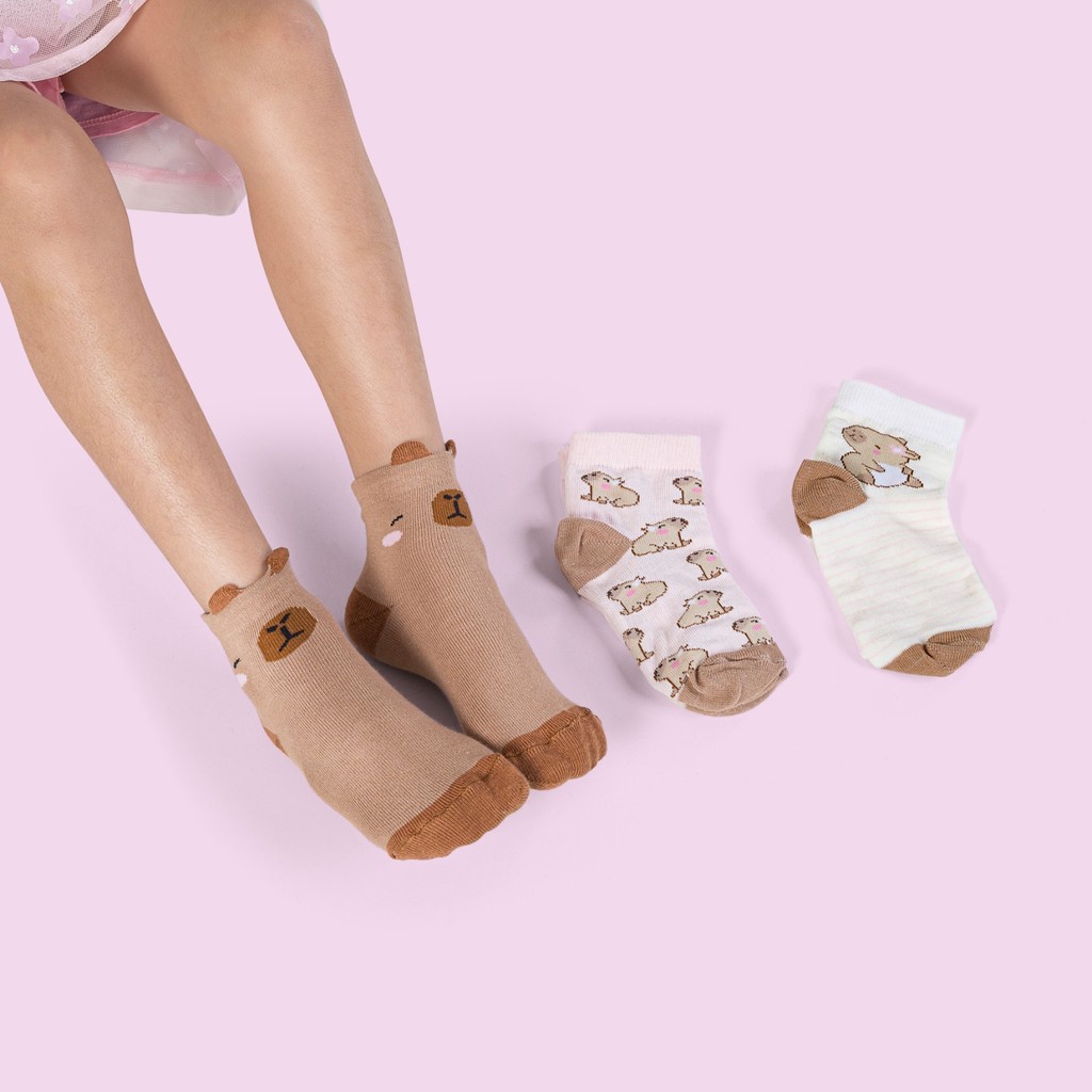 Kit Meias Meninas 3D Capivara Colorida Criança Conjunto