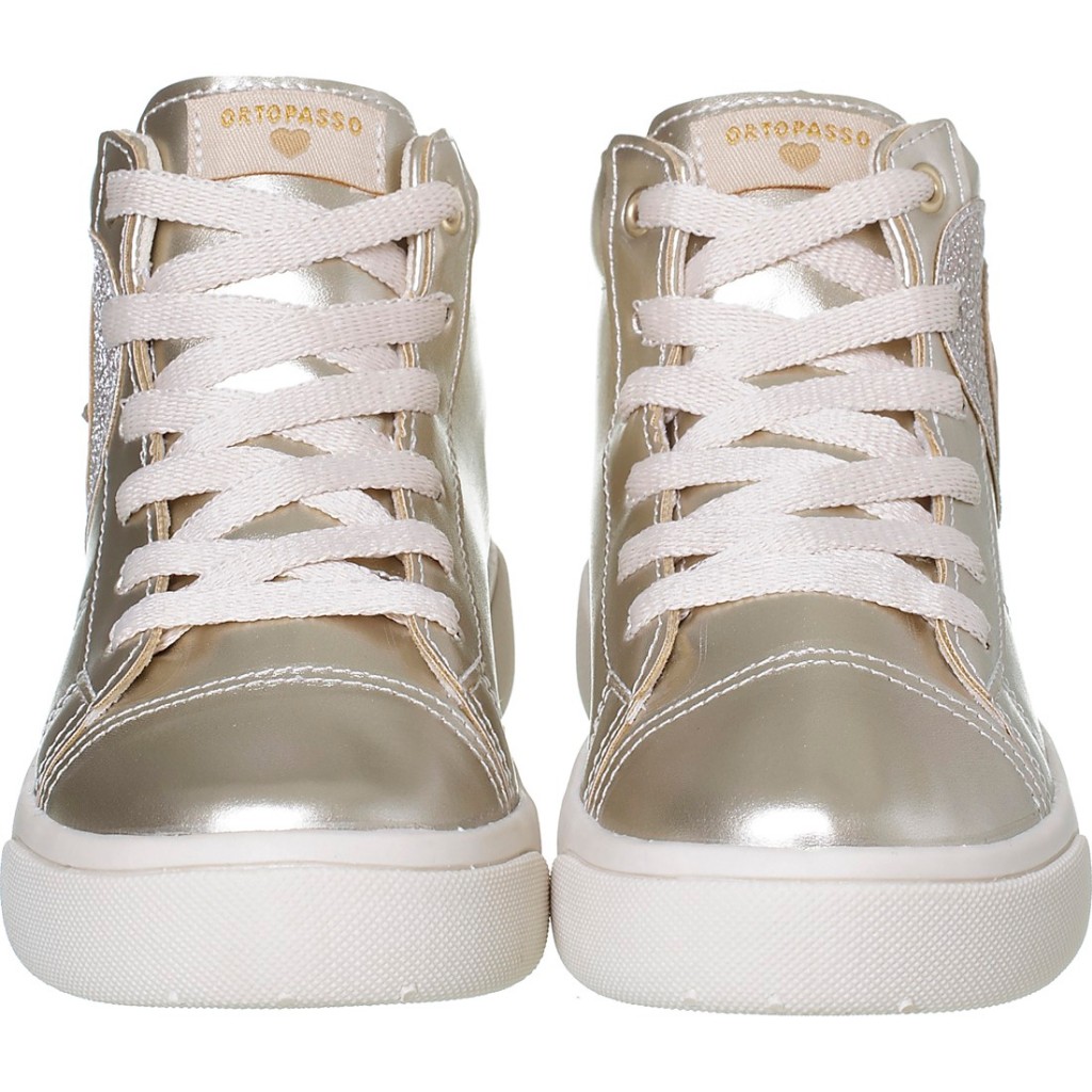 Tênis Infantil Ortopasso New Stars Menina Cano Alto Coração Sola Reta Cadarço Feminino 28 ao 36