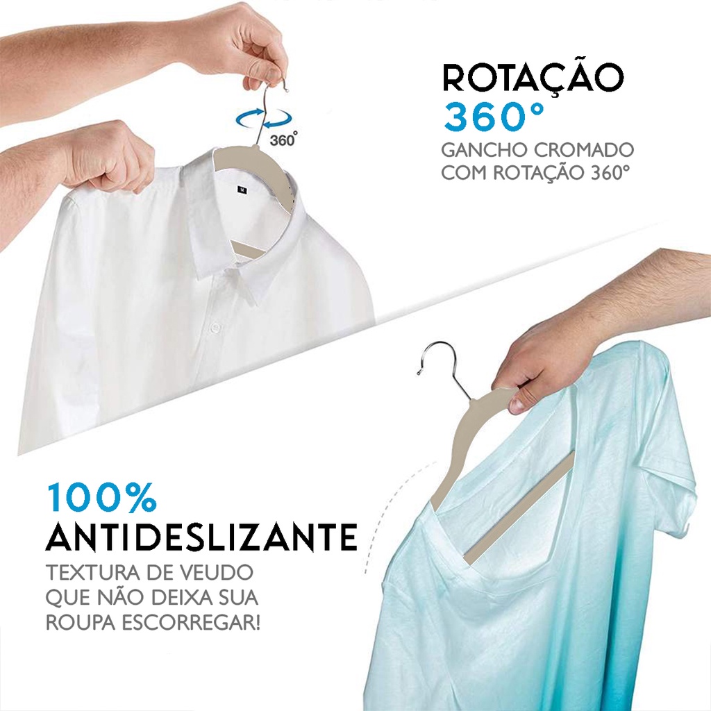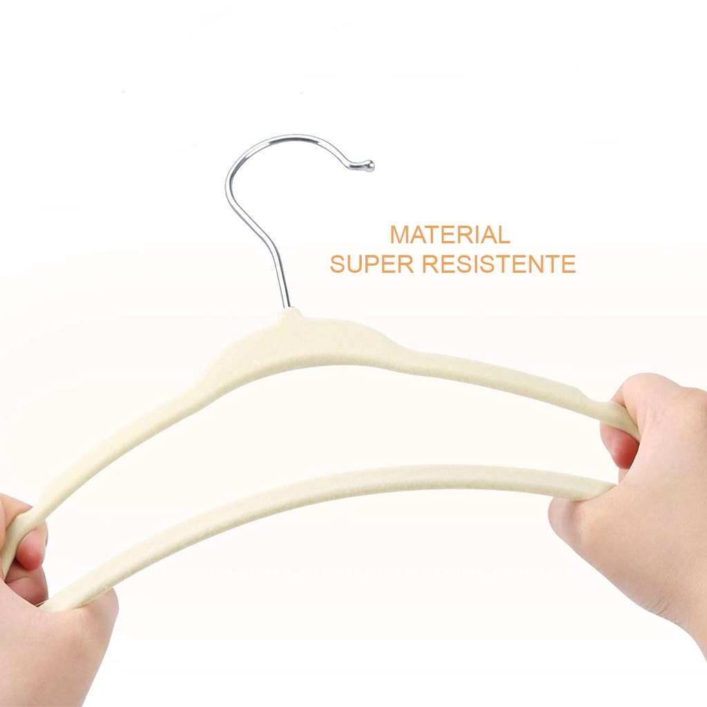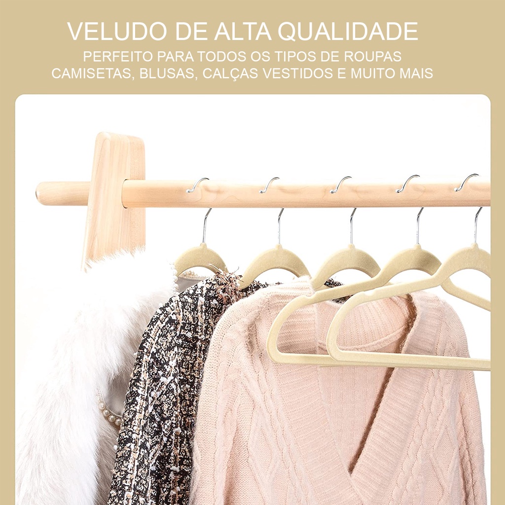 Kit 100 Cabides De Veludo Ultra Fino Antideslizante Bege