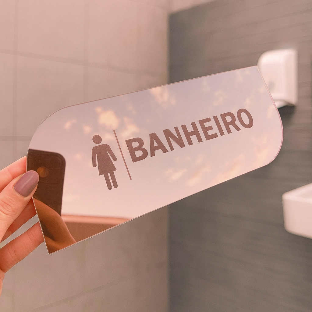 Placa Sinalização Banheiro Wc Acrílico espelhado Masculino Feminino