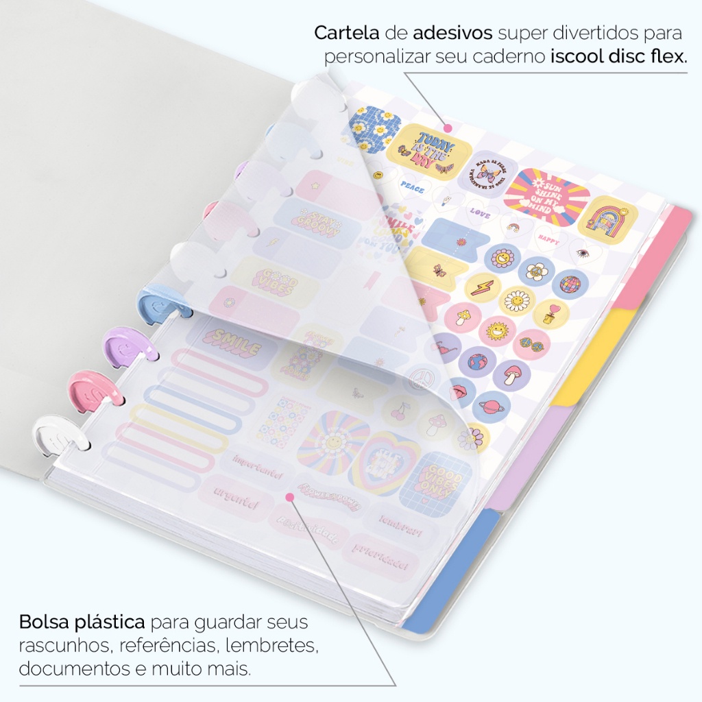 Caderno De Disco Iscool Inteligente Médio 80 Folhas Retro