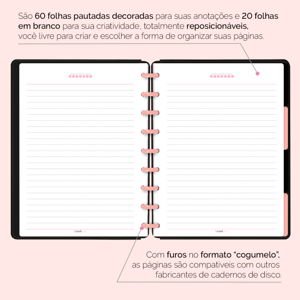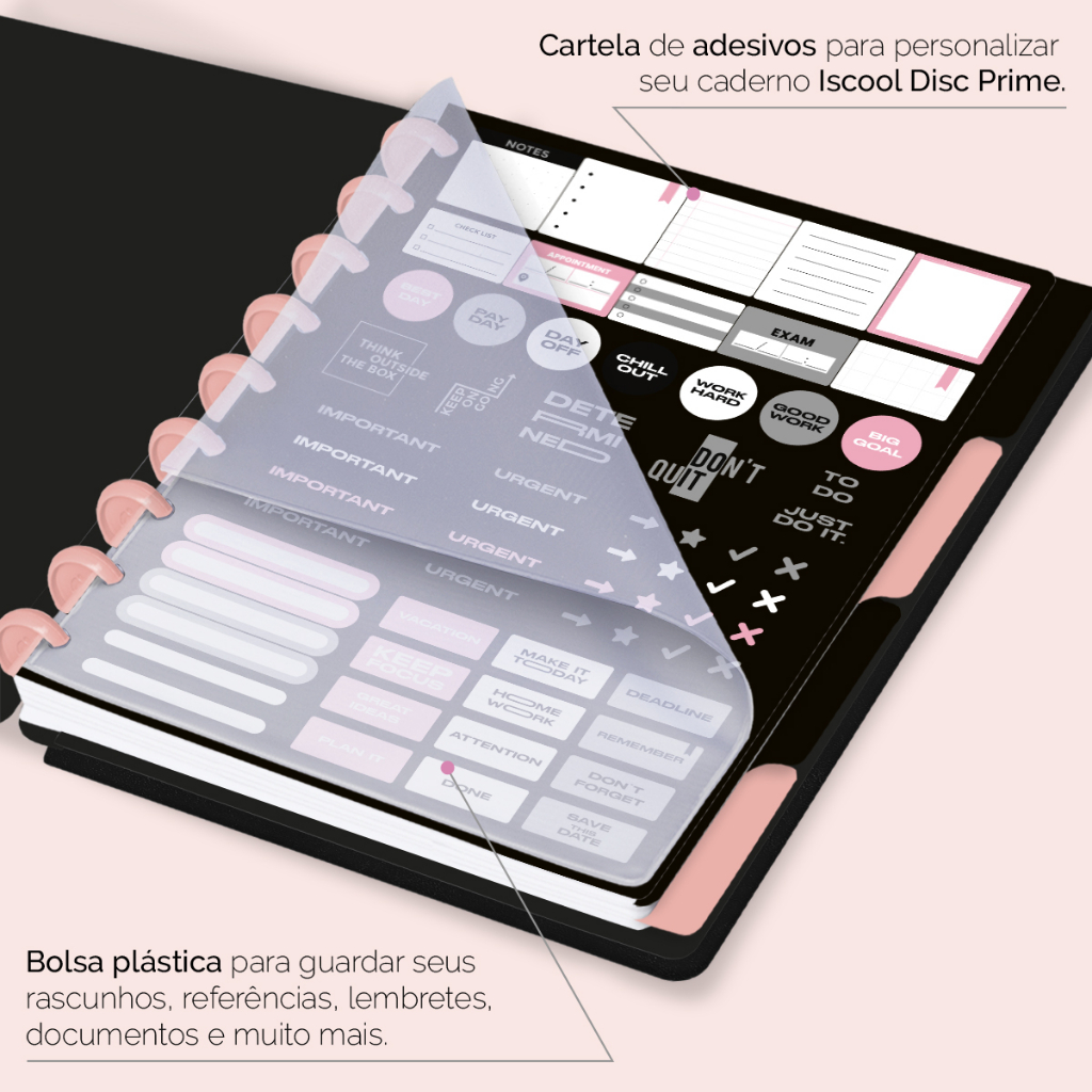 Caderno De Disco Iscool Inteligente Capa Dura 80 Folhas Profissões Rosê