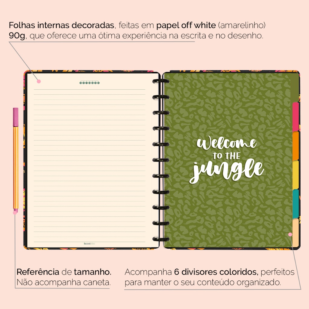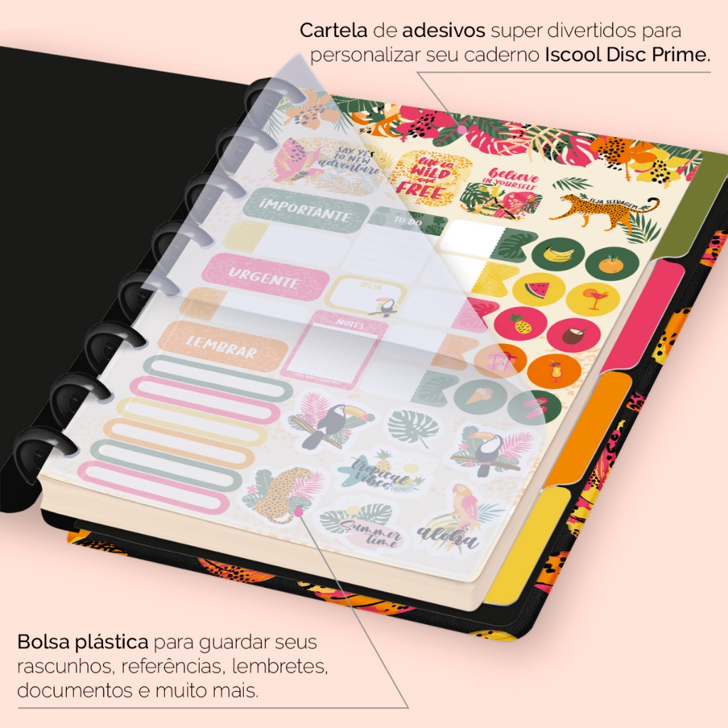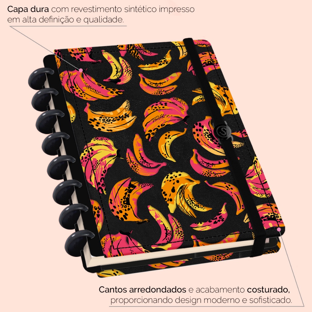 Caderno De Disco Iscool Inteligente Capa Dura 80 Folhas Tropical Bananas Preto