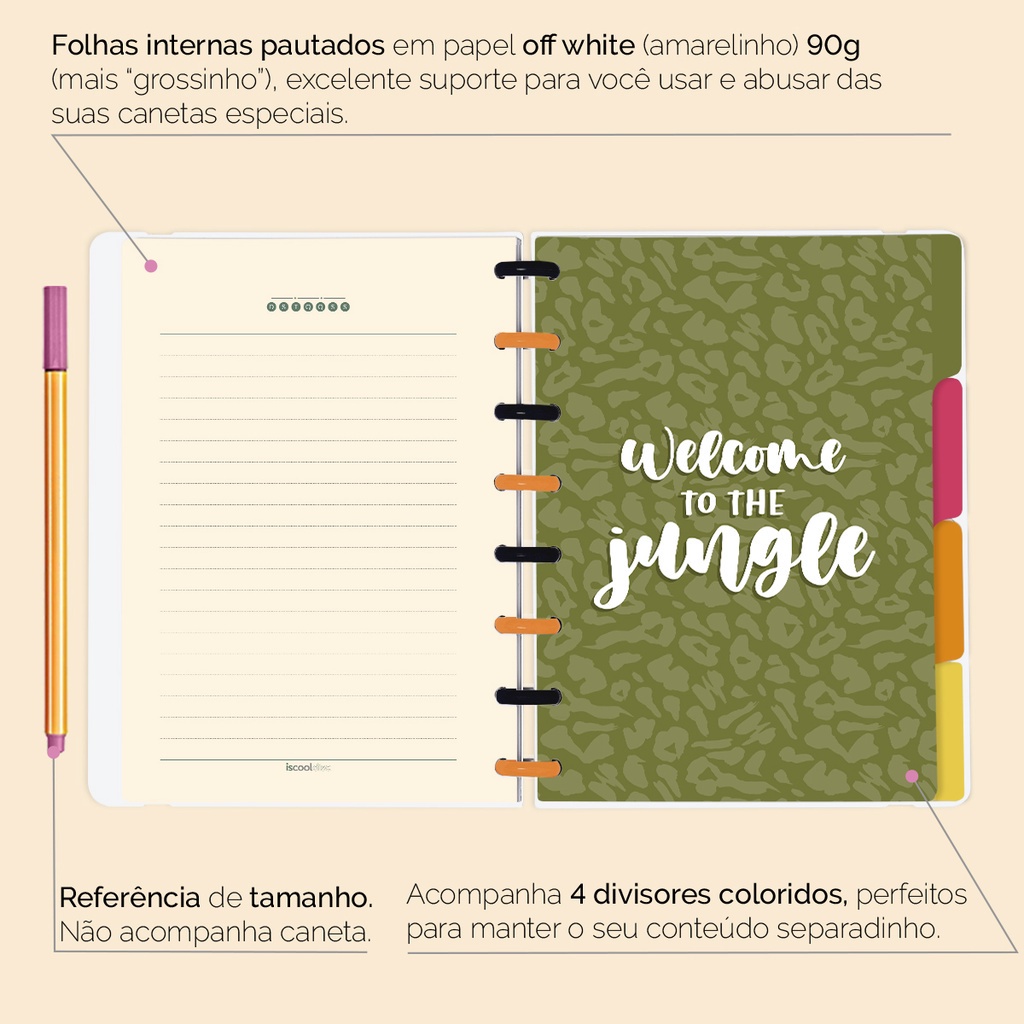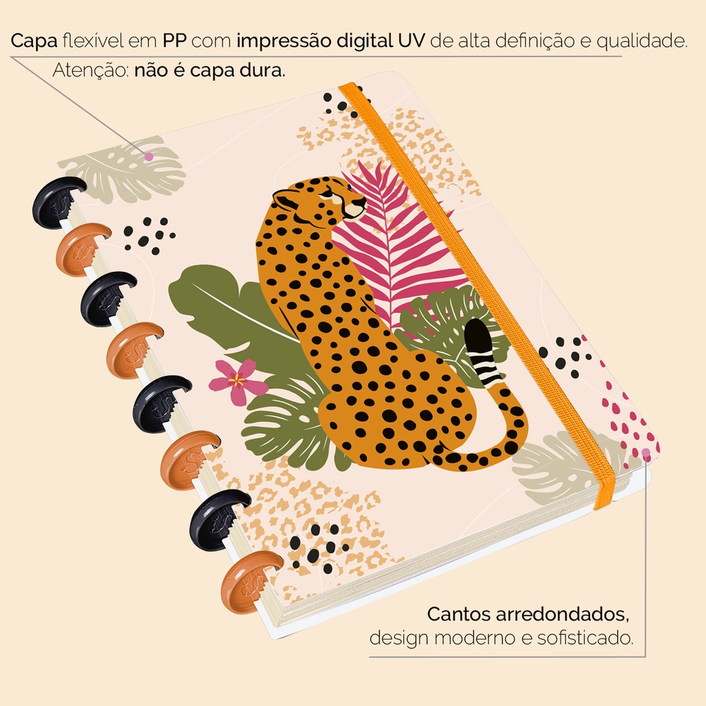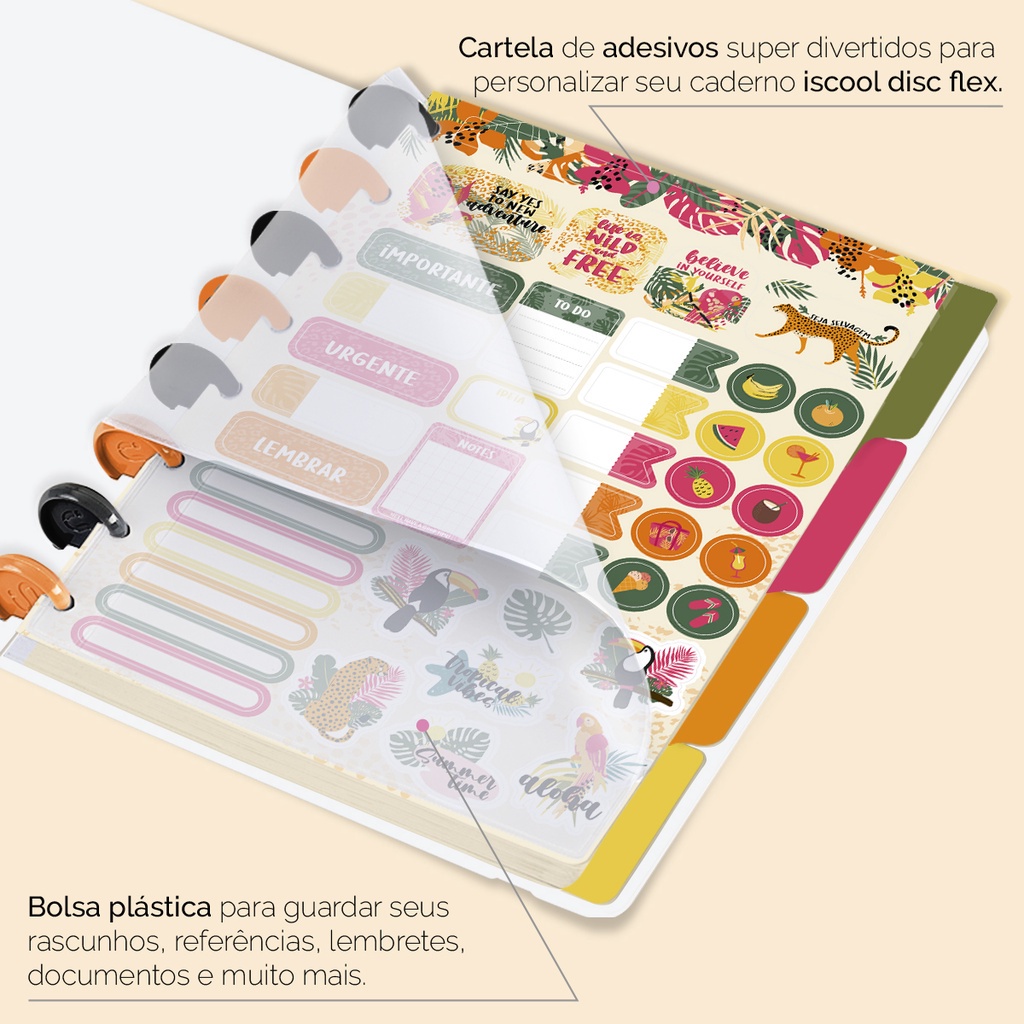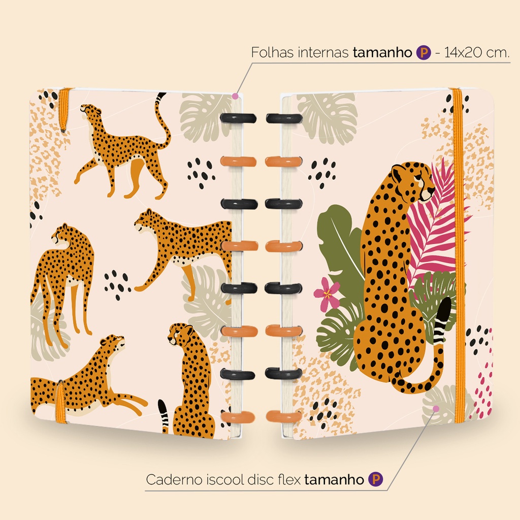 Caderno De Disco Iscool Inteligente Pequeno 80 Folhas Tropical Onça Rosa