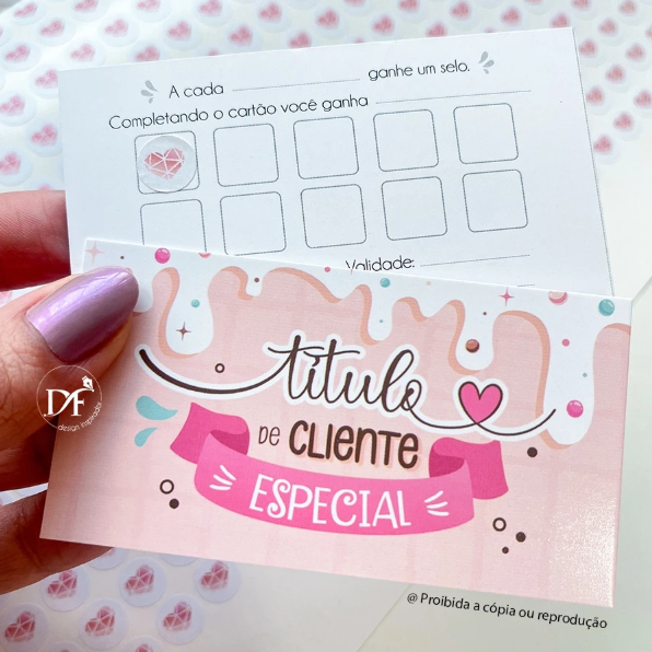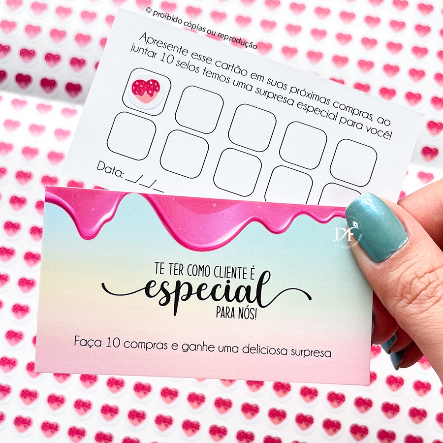 Cartões Fidelidade Doceria + Selos - 50 ou 100 unid. - 9x5cm