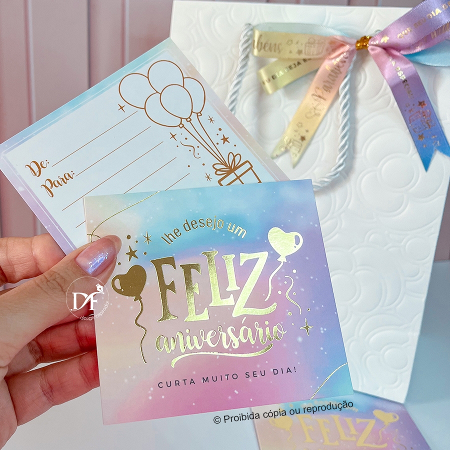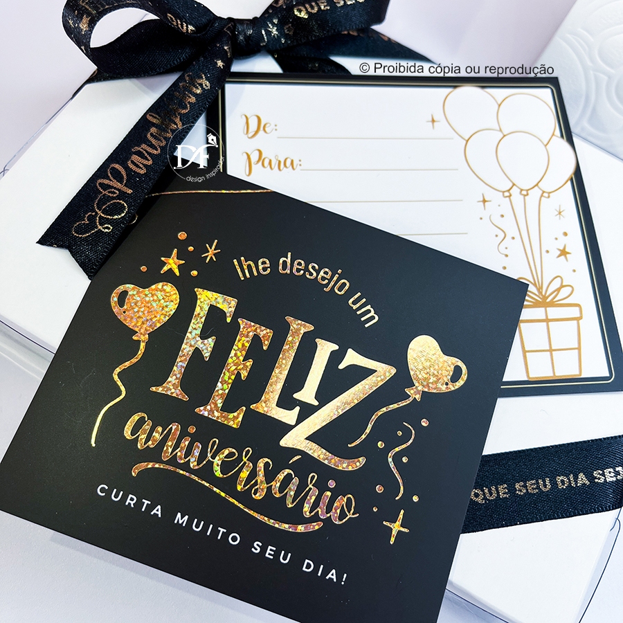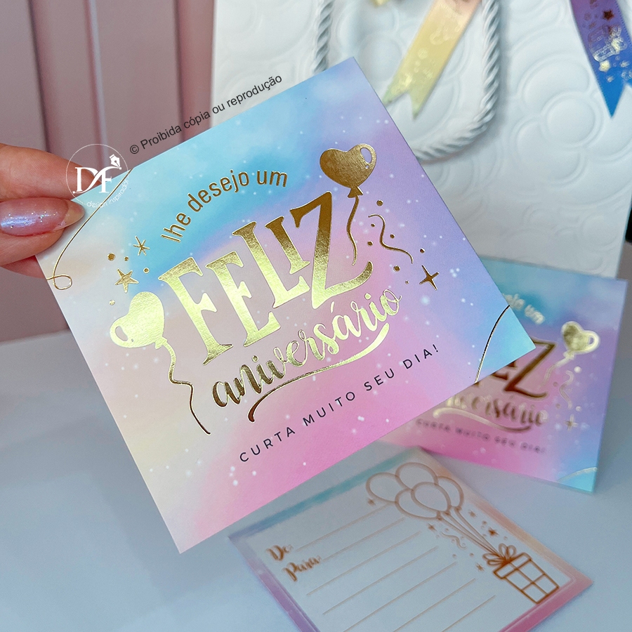 10 ou 25 Postais ANIVERSÁRIO - com Hotstamping - Cartões para presentes ou encomendas