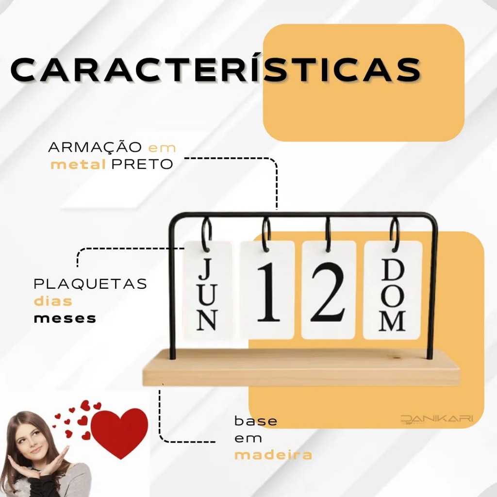 Calendário Permanente Decoração Industrial Sala Escritório Calendário Permanente Industrial