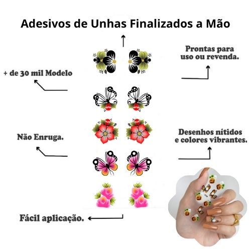 100 Adesivos de Unhas 3D Pré Pronta e Leve 120 Mão Pés Nails Art Adesivo - Alemay e GViana Unhas