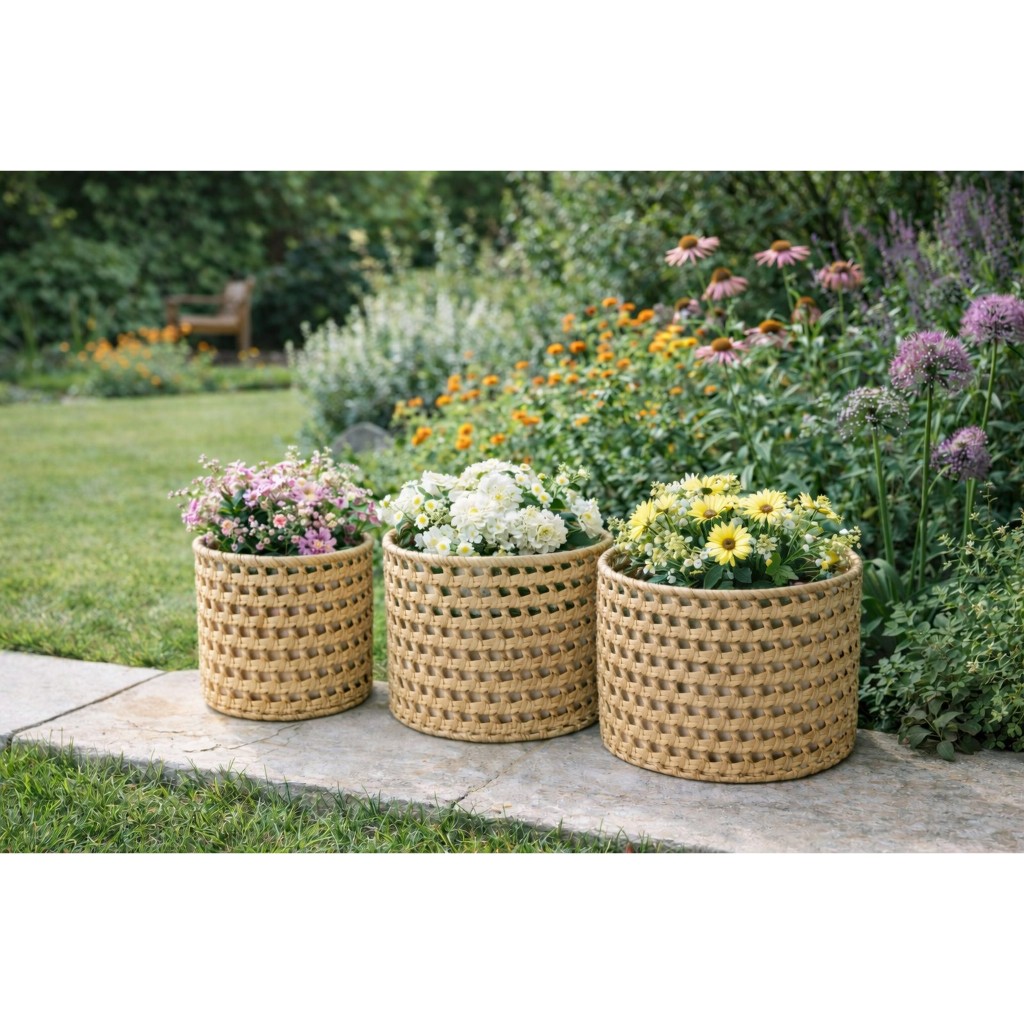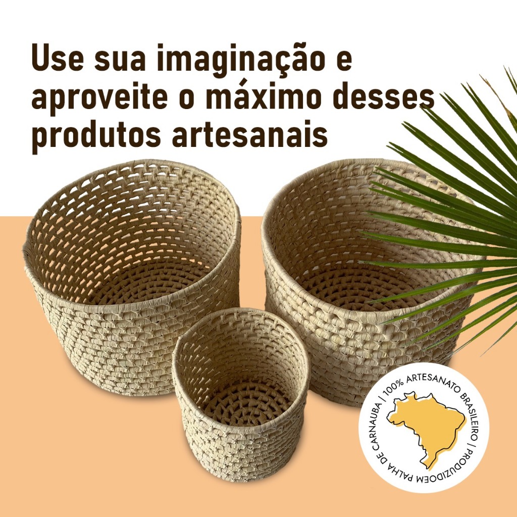 Kit 3 Peças Cachepot Palha Natural, Vasos De Palha Natural