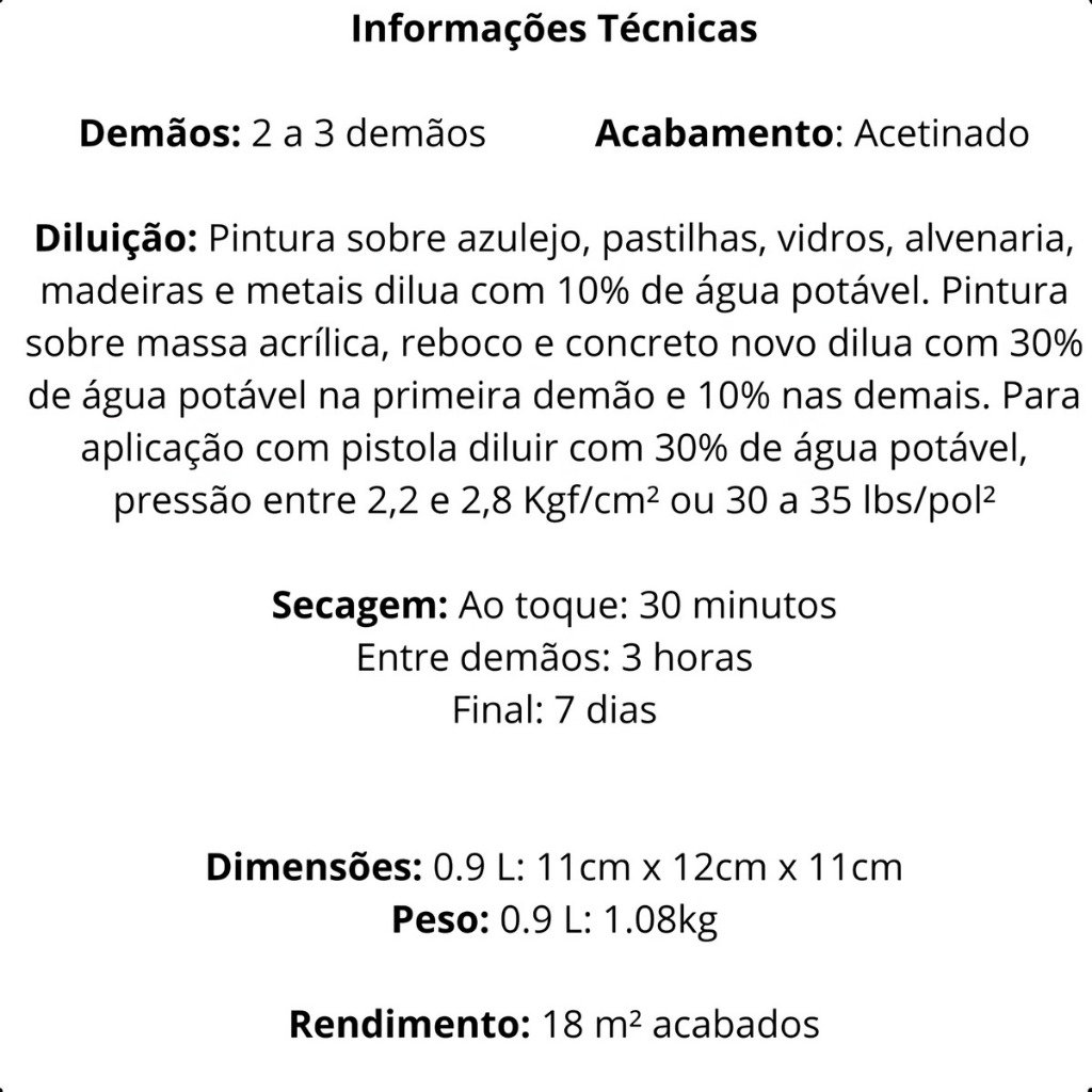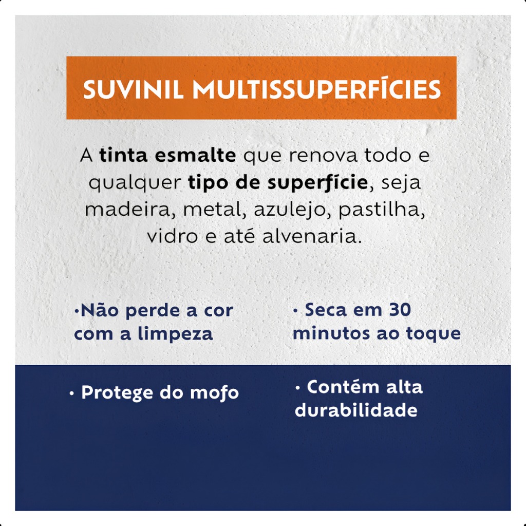 Tinta Epóxi Multissuperficies Branco Acetinado Suvinil 900ml p/ azulejos, pastilhas, vidros, alvenaria, madeiras, metais