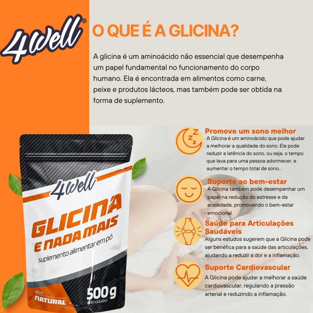 Glicina em pó 500g - 100% Pura - Suplemento Aminoácido - 4well