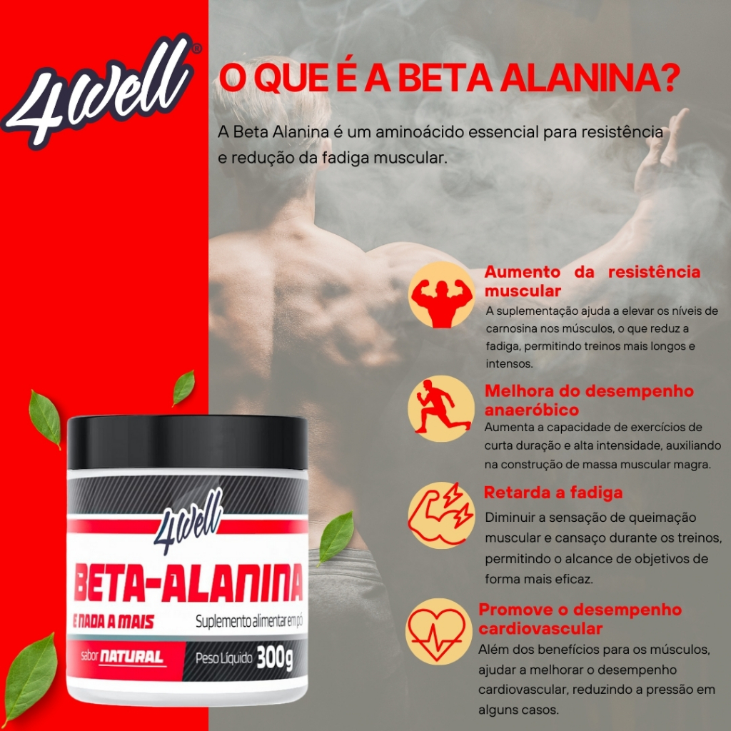 Beta Alanina 100% Pura Importada 300g Pote - 4well