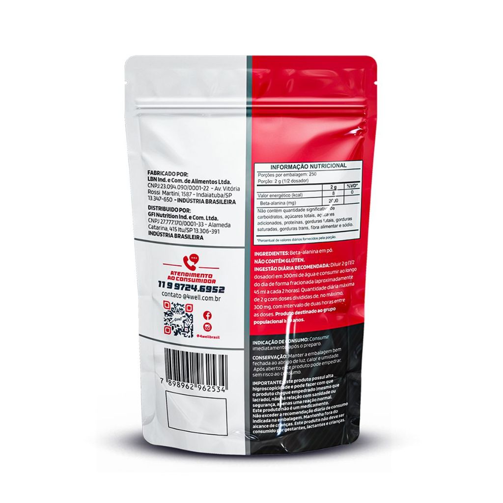 Beta Alanina 500g - 100% Pura - Importada - 4well