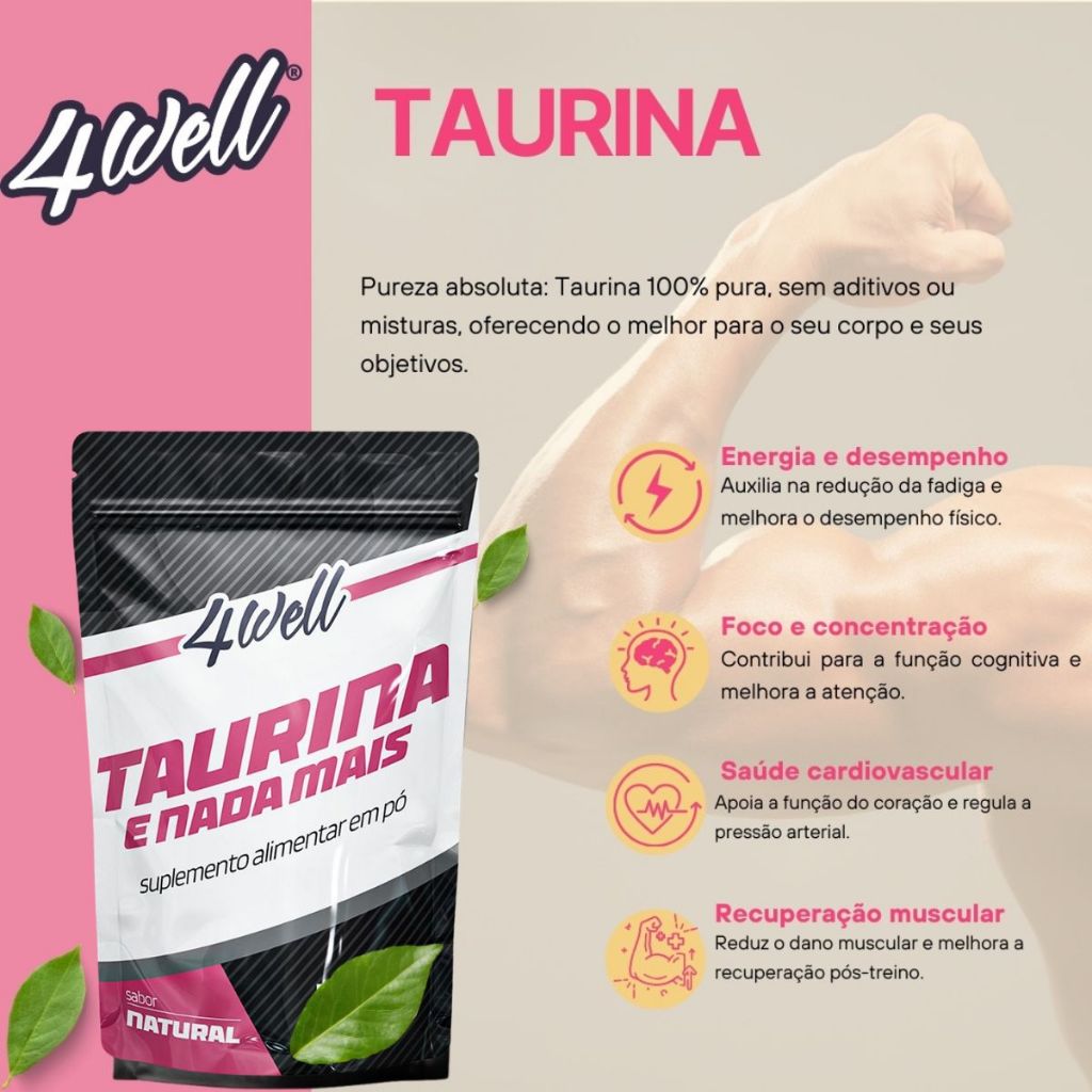 Taurina 1Kg 100% Pura Importada 4well Sabor Natural