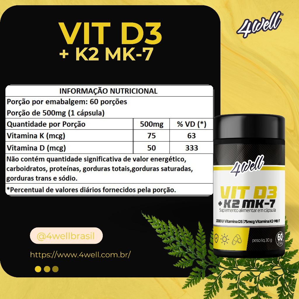 Vitamina D3(Colecalciferol 2.000ui) + K2(menaquinona-7 149mcg) 4well - 60 cápsulas