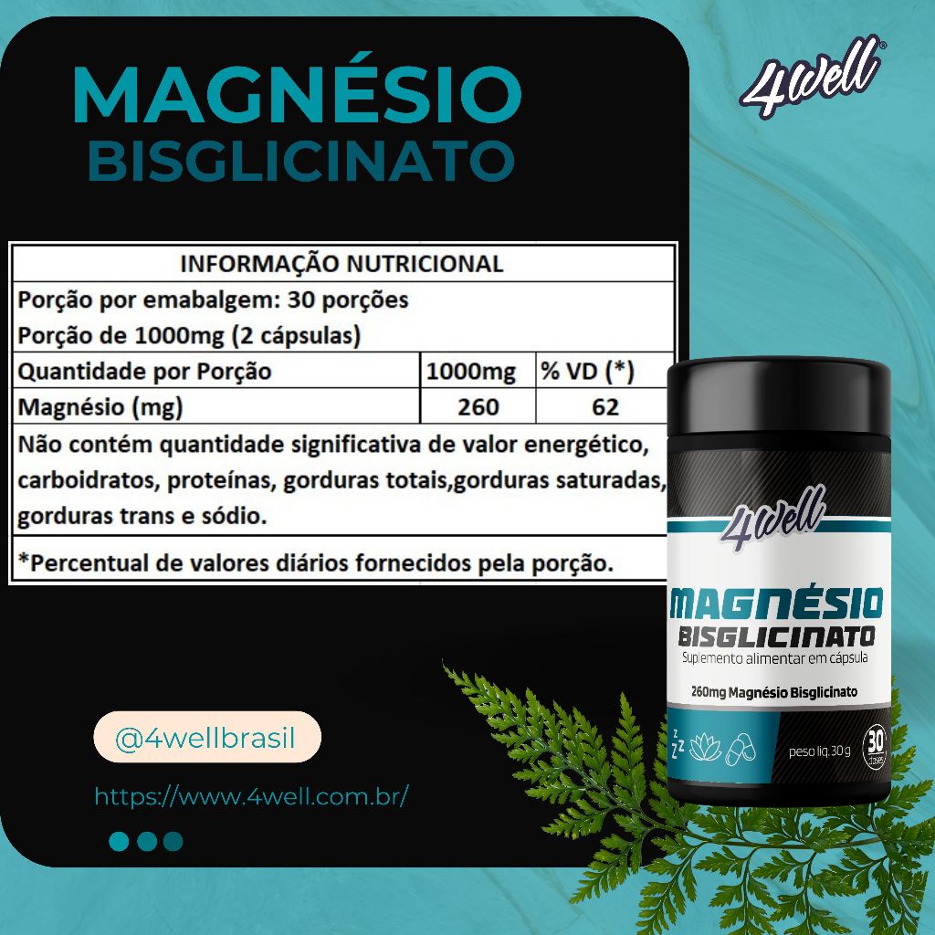 Magnésio Bisglicinato 4well 260mg - 60 cápsulas
