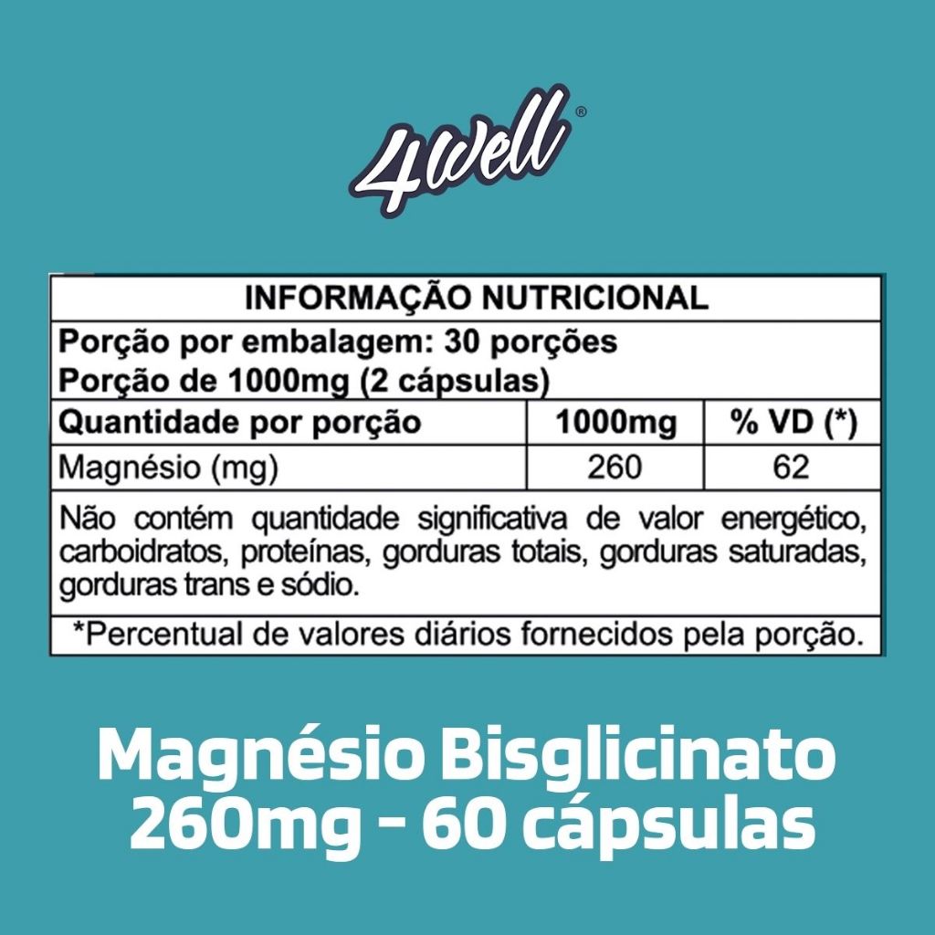 Magnésio Bisglicinato 4well 260mg - 60 cápsulas - Combo 2 potes