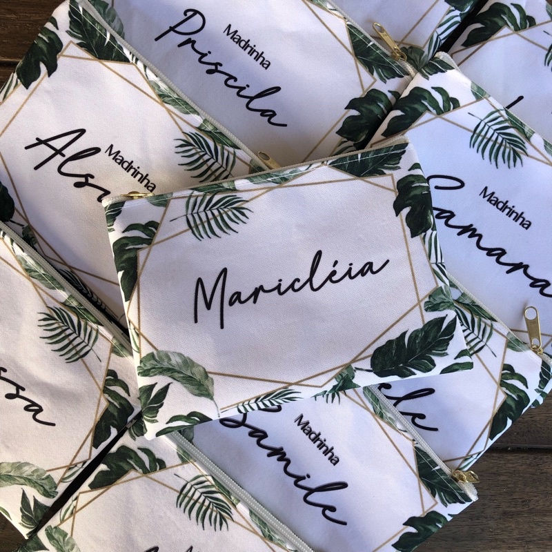 Necessaire Slim Folhagens Personalizada c/ nome para Madrinhas - Tamanho 14x18