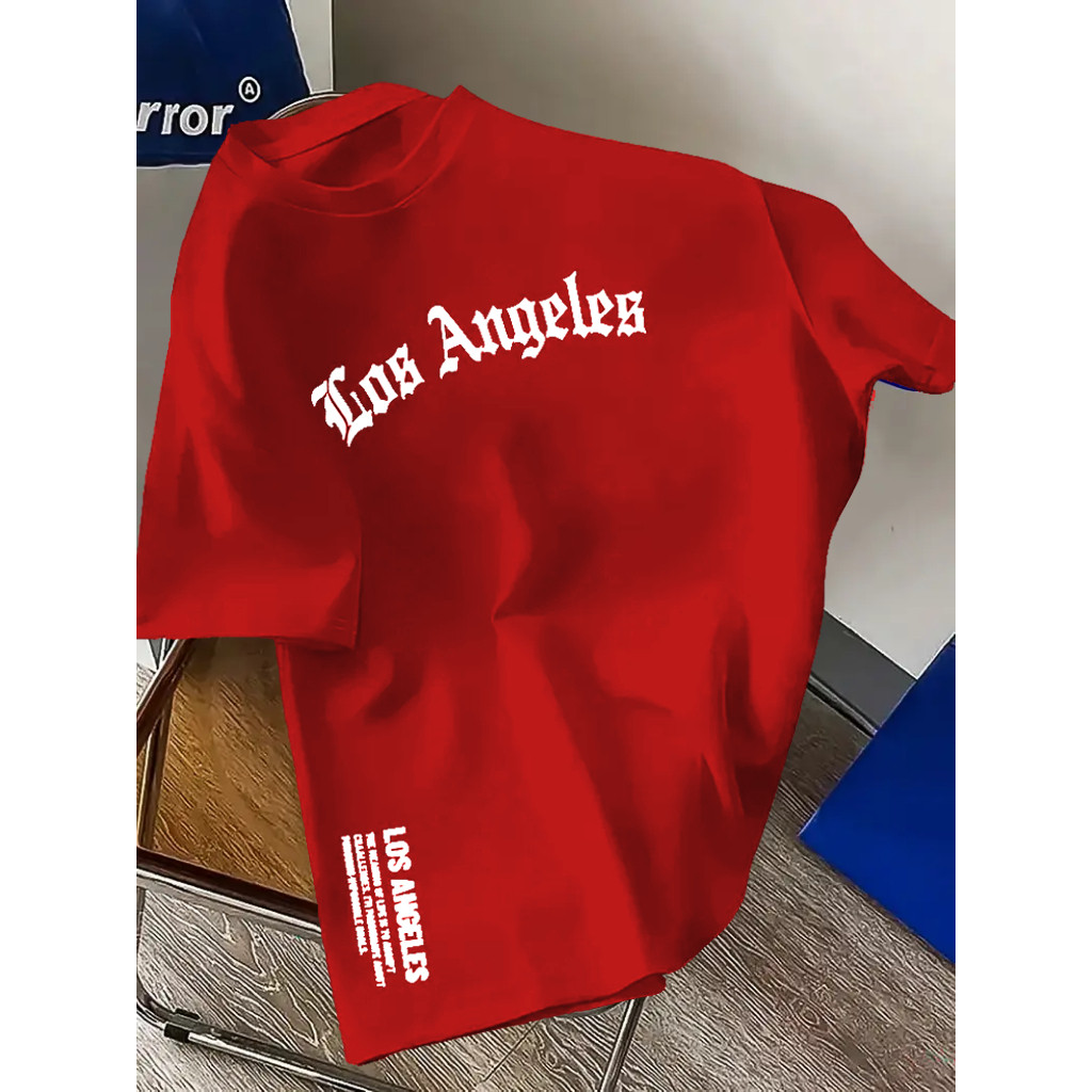 Camiseta Masculina Minimalista Estampa de Los Angeles Camisa Casual Streetwear 100% Algodão Premium