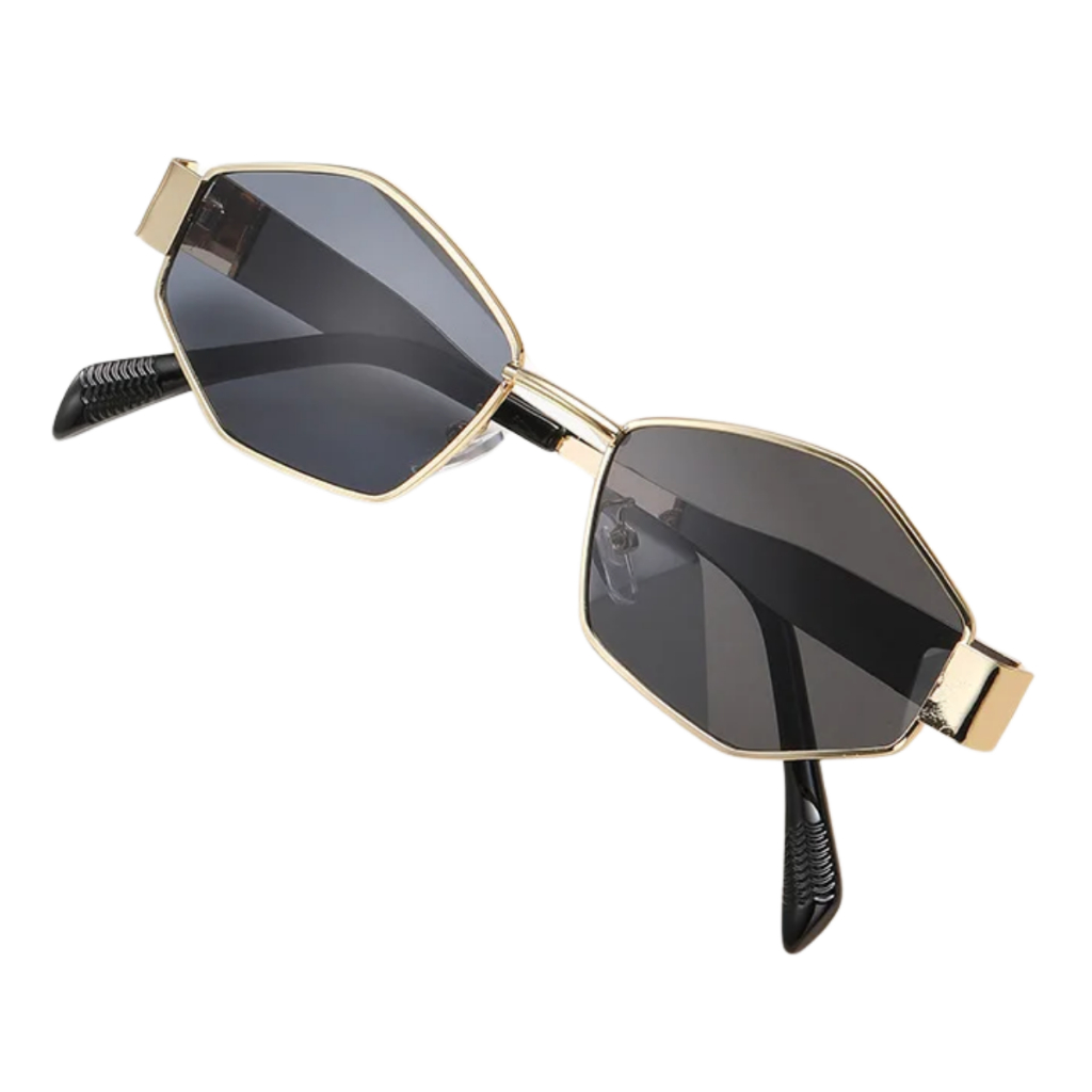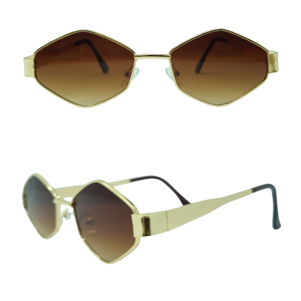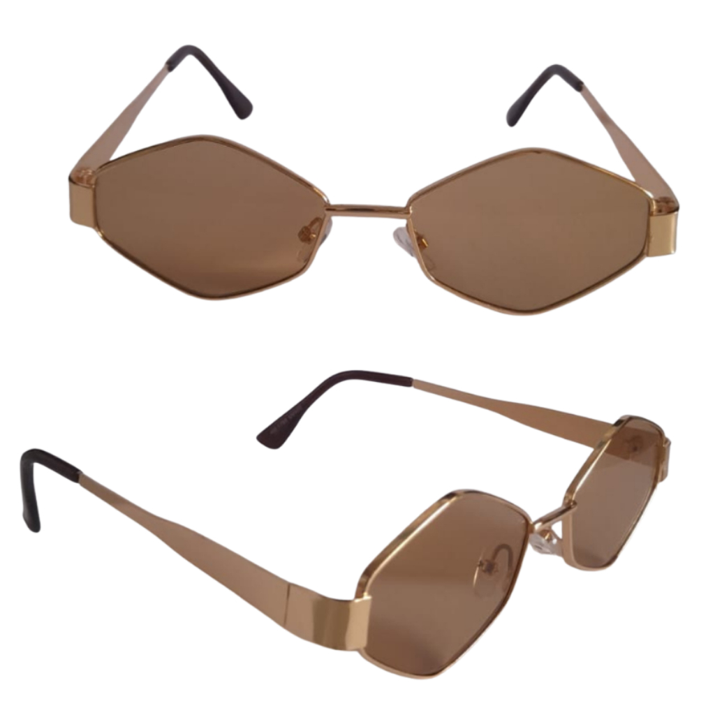 Óculos De Sol Poligonal Dourado Cobre Tendencia Metalizado Moda Hype Feminino Masculino Envio Rápido
