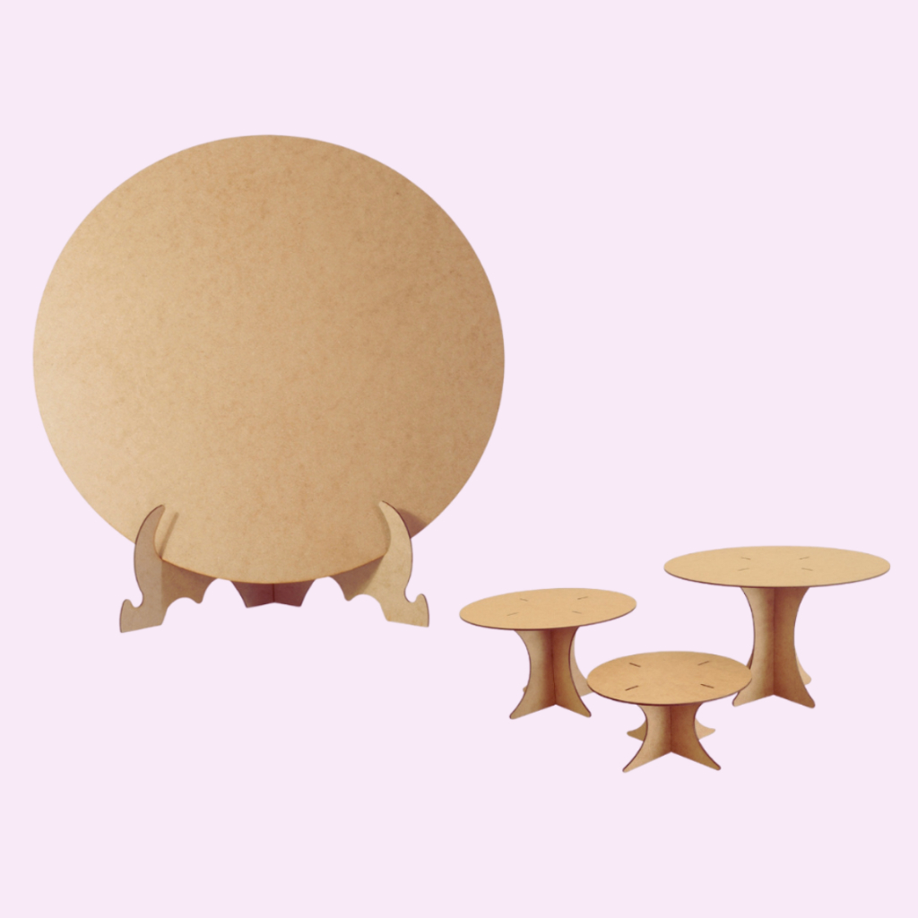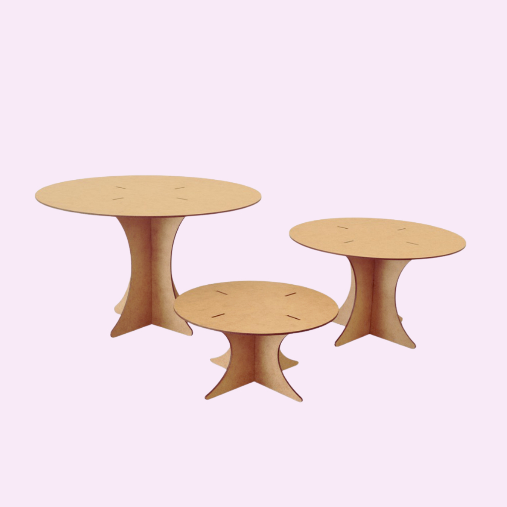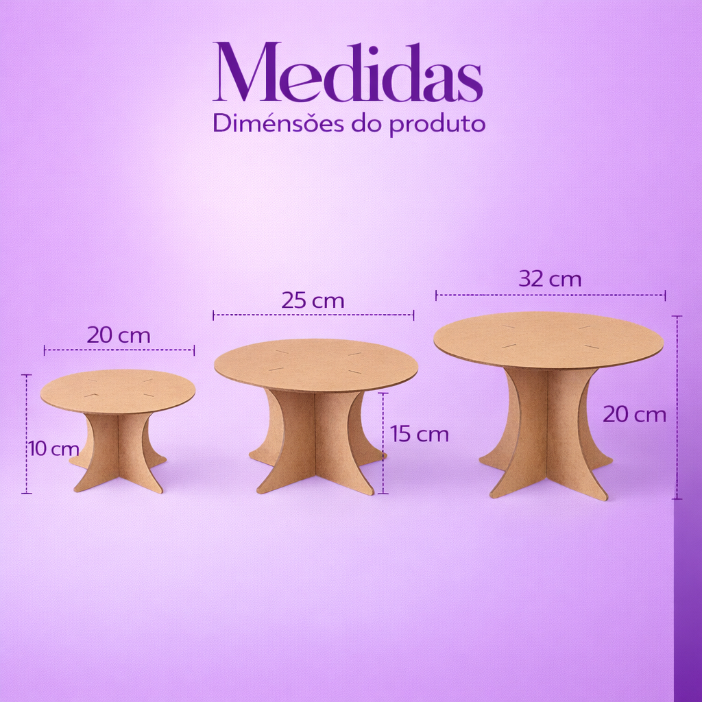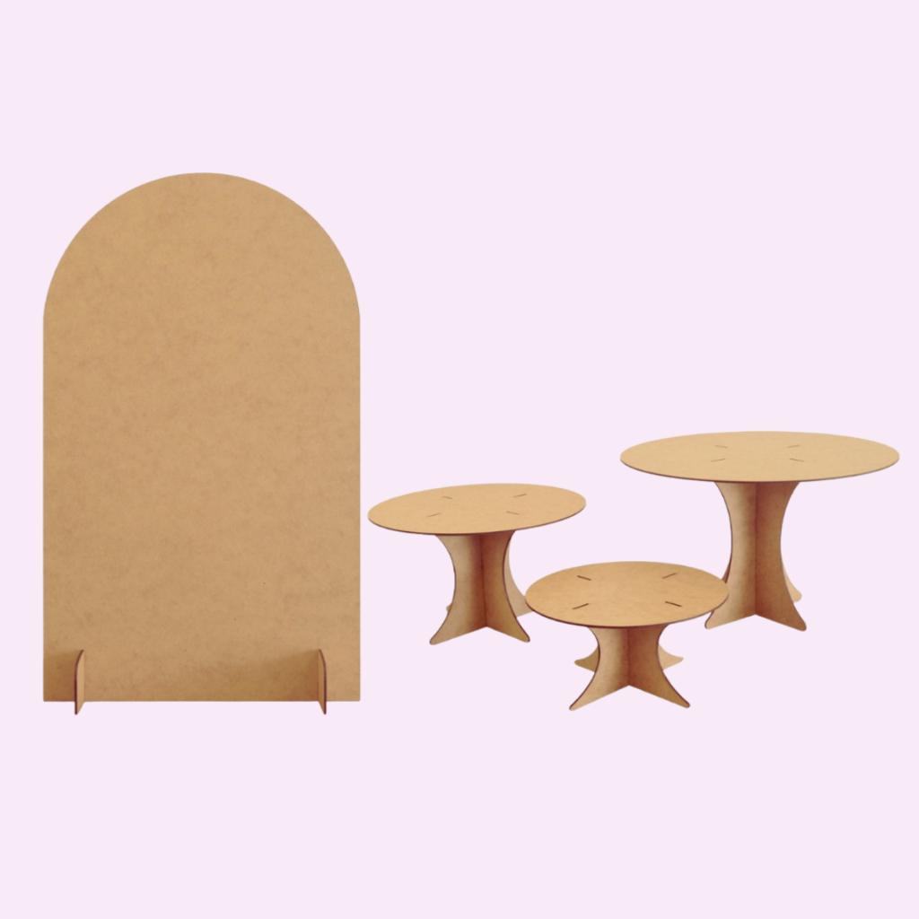 Kit Decoração de Festa Mesa Trio Boleira Painel Redondo e Painel Romano Mdf