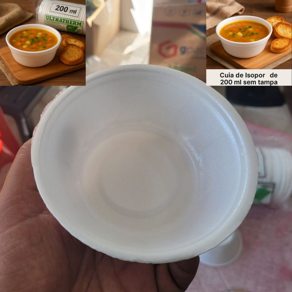 Cumbuca Funda 200 ml Para Caldo Cuia De Isopor Térmica Branca Pote 50 / 100 / 150 / 200 Unidades