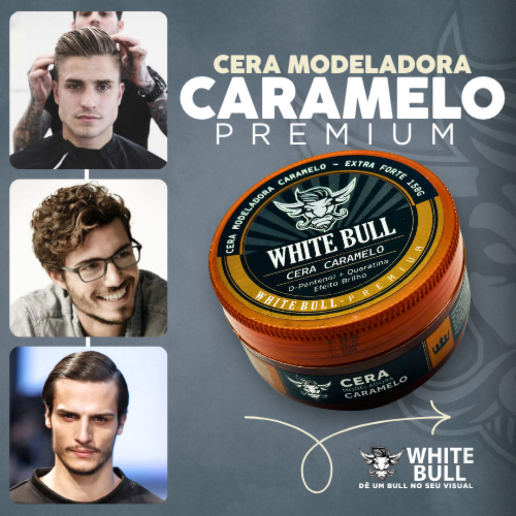 Pomada Cera Modeladora Caramelo Premium 150g - White Bull Fixação Forte Sem Resíduos