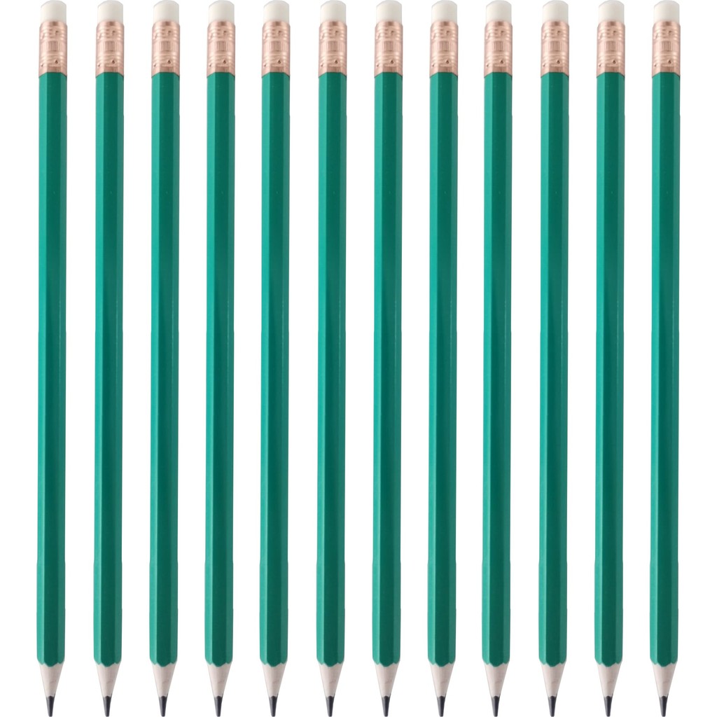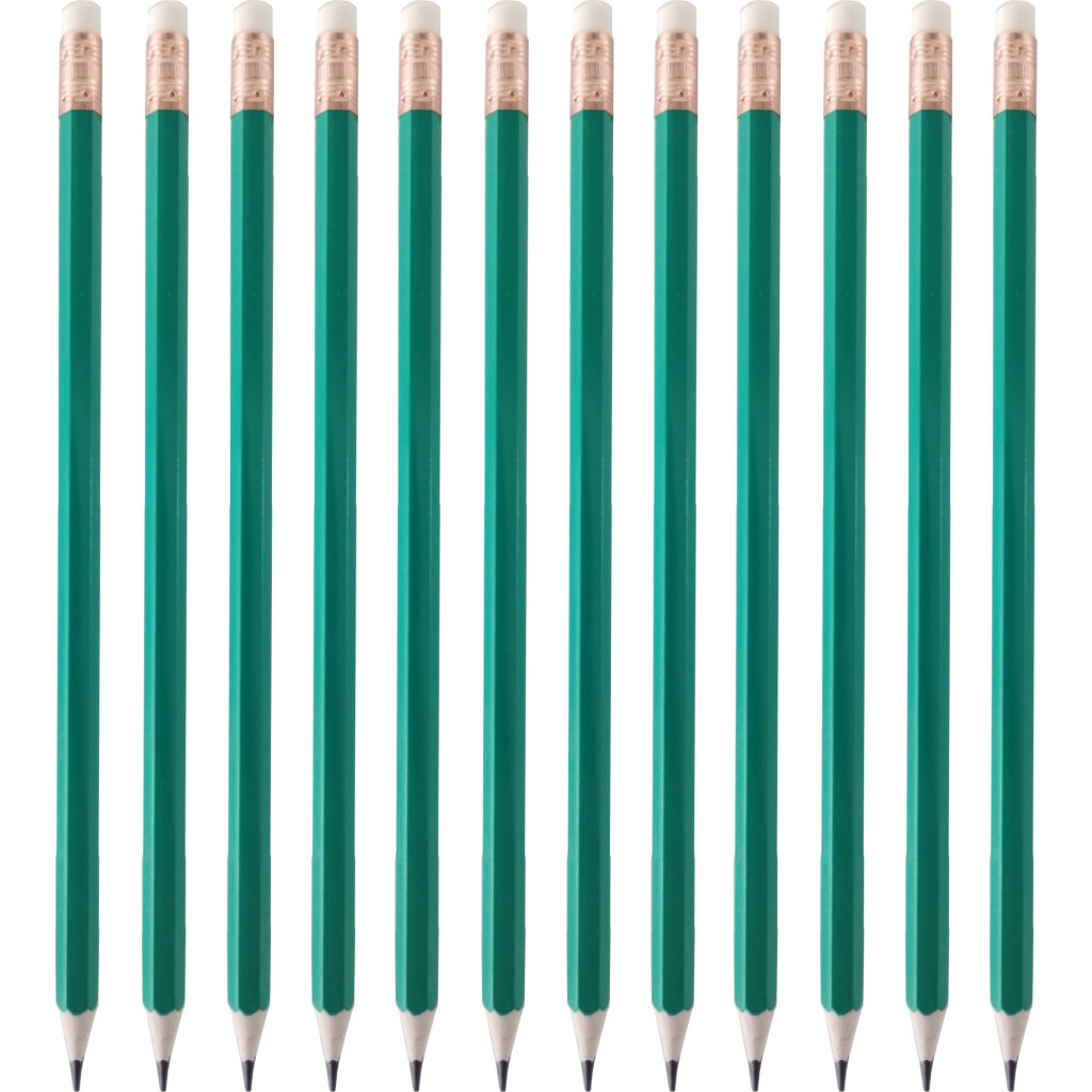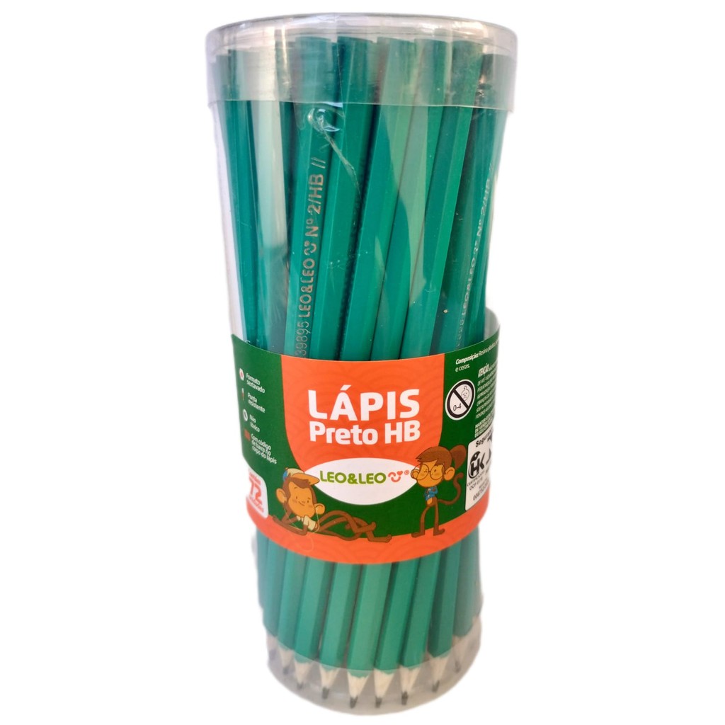 4390P - Kit Lápis de Escrever Escolar Preto HB Verde Sextavado com Borracha LeoeLeo