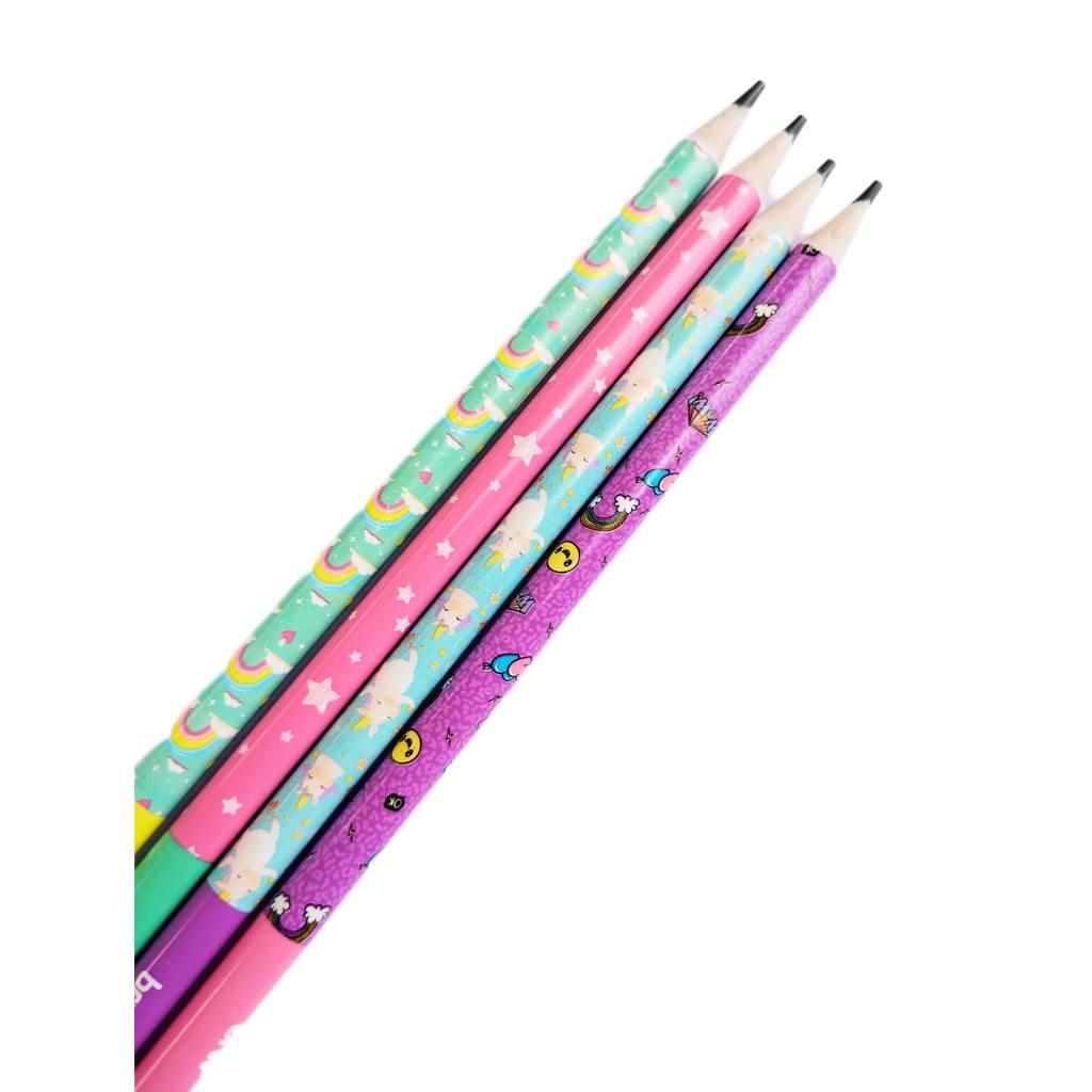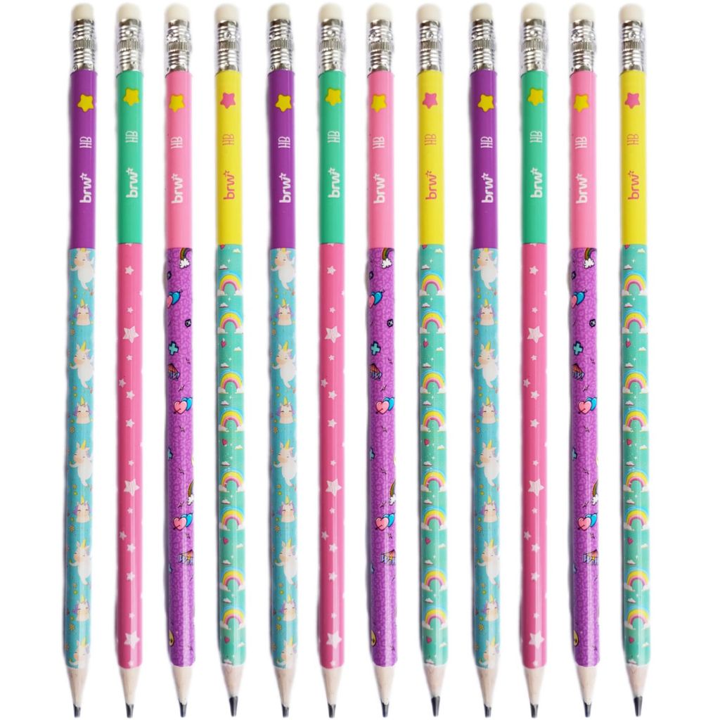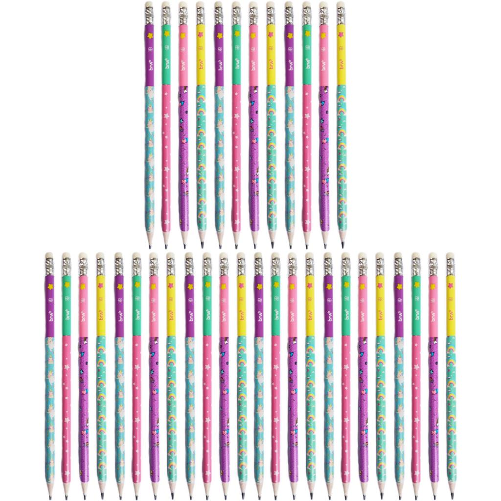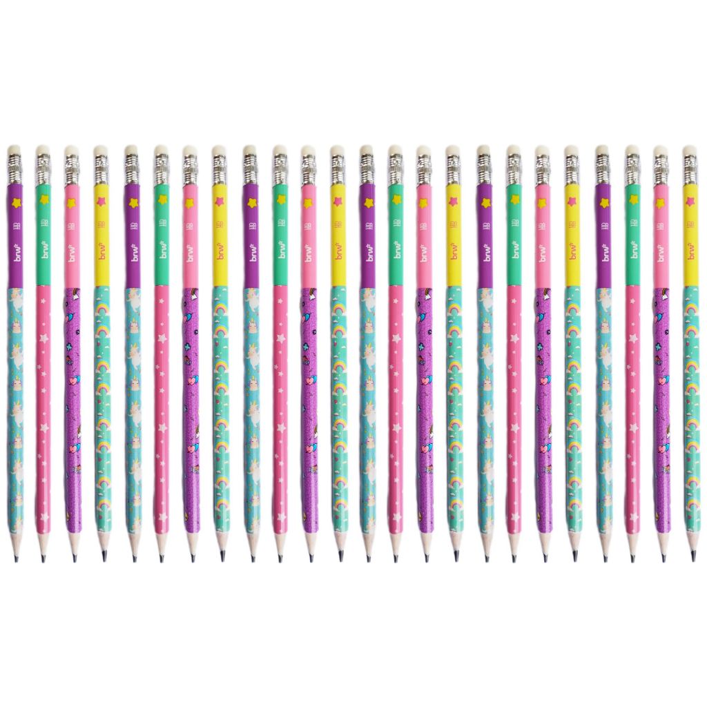 LP7211P - Kit Lápis de Escrever Escolar Preto HB Magic Decorado com Borracha BRW