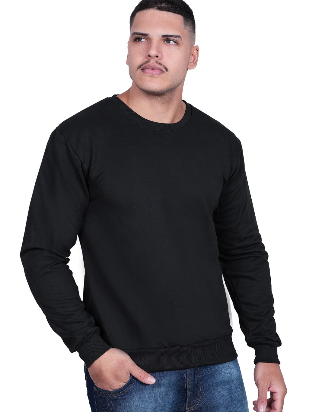 Blusa De Frio Masculina Moletom Careca Preto Liso Adulto Fechado Gola Redonda Sem Capuz Techmalhas