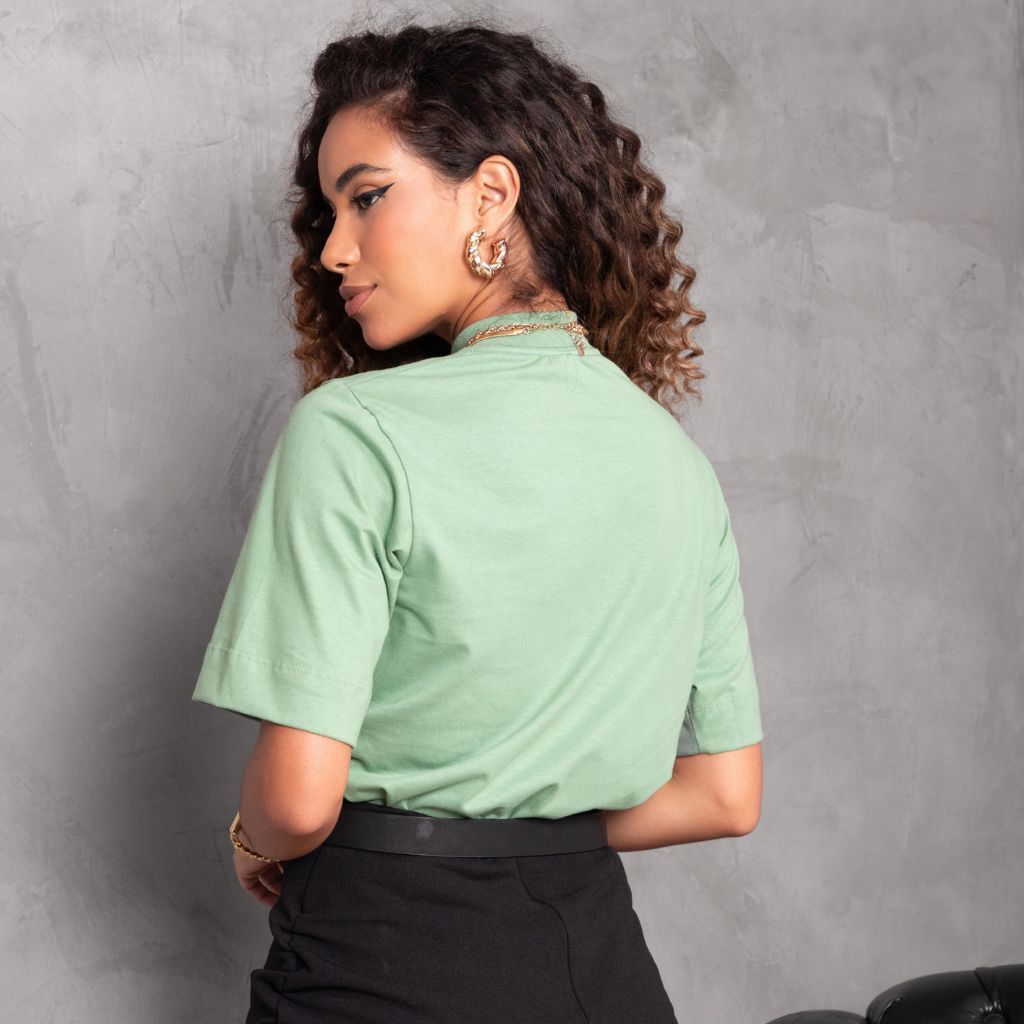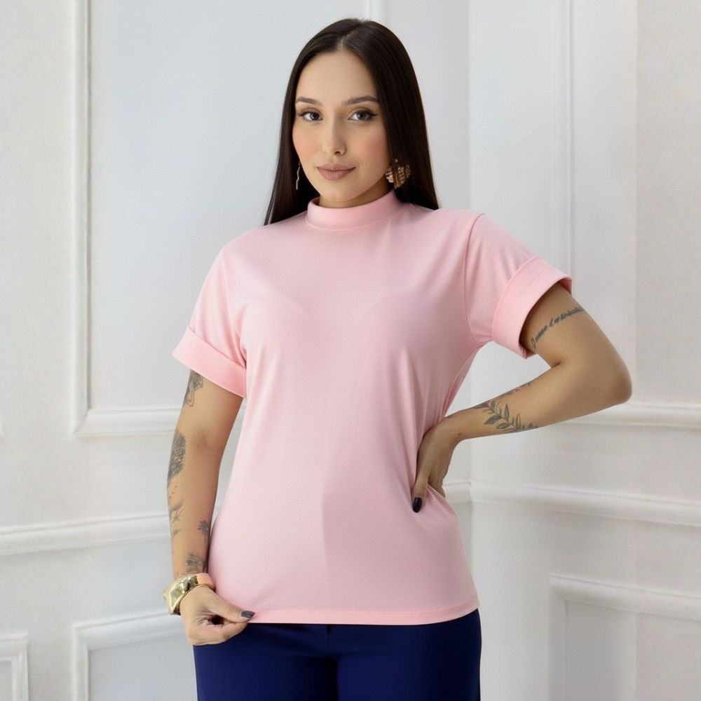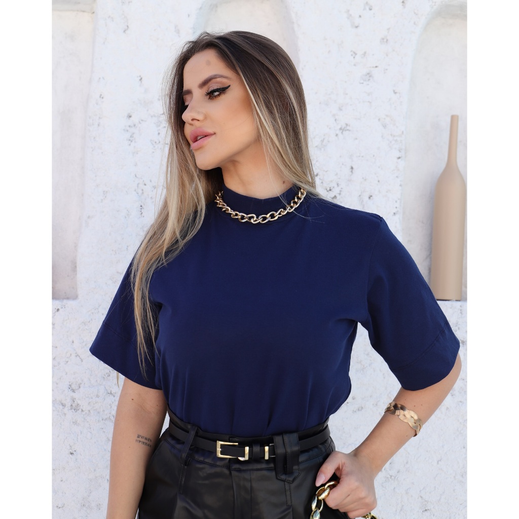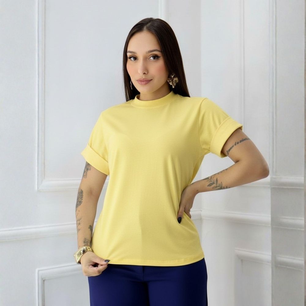 T-Shirt Estilosa Gola Alta Blusa Feminina 100% Algodão Camiseta Basica Lisa