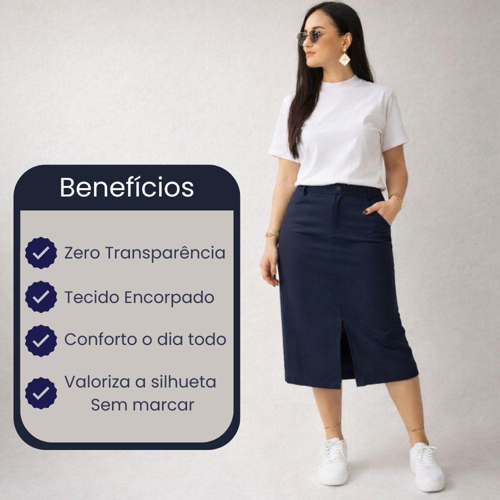 Saia Alfaiataria Feminina Midi Premium | Alfaiataria | Modelagem Perfeita