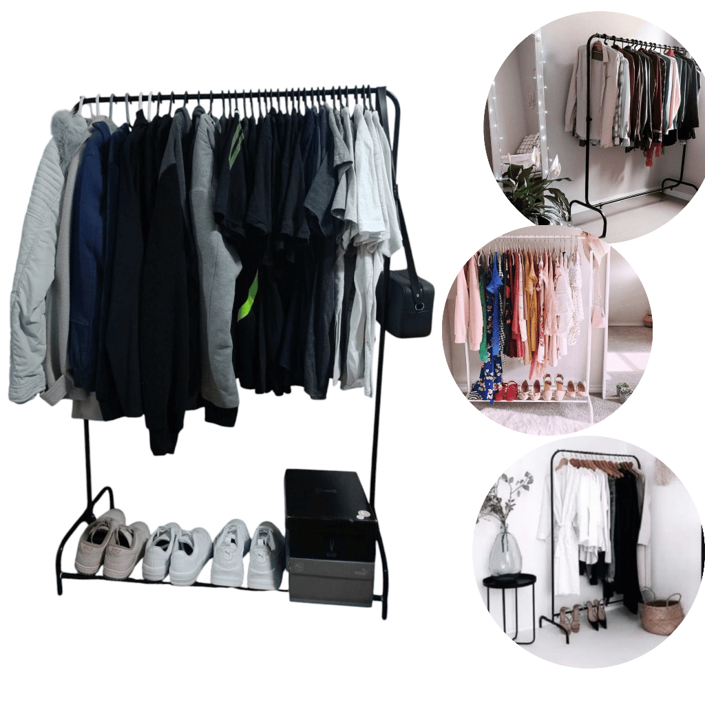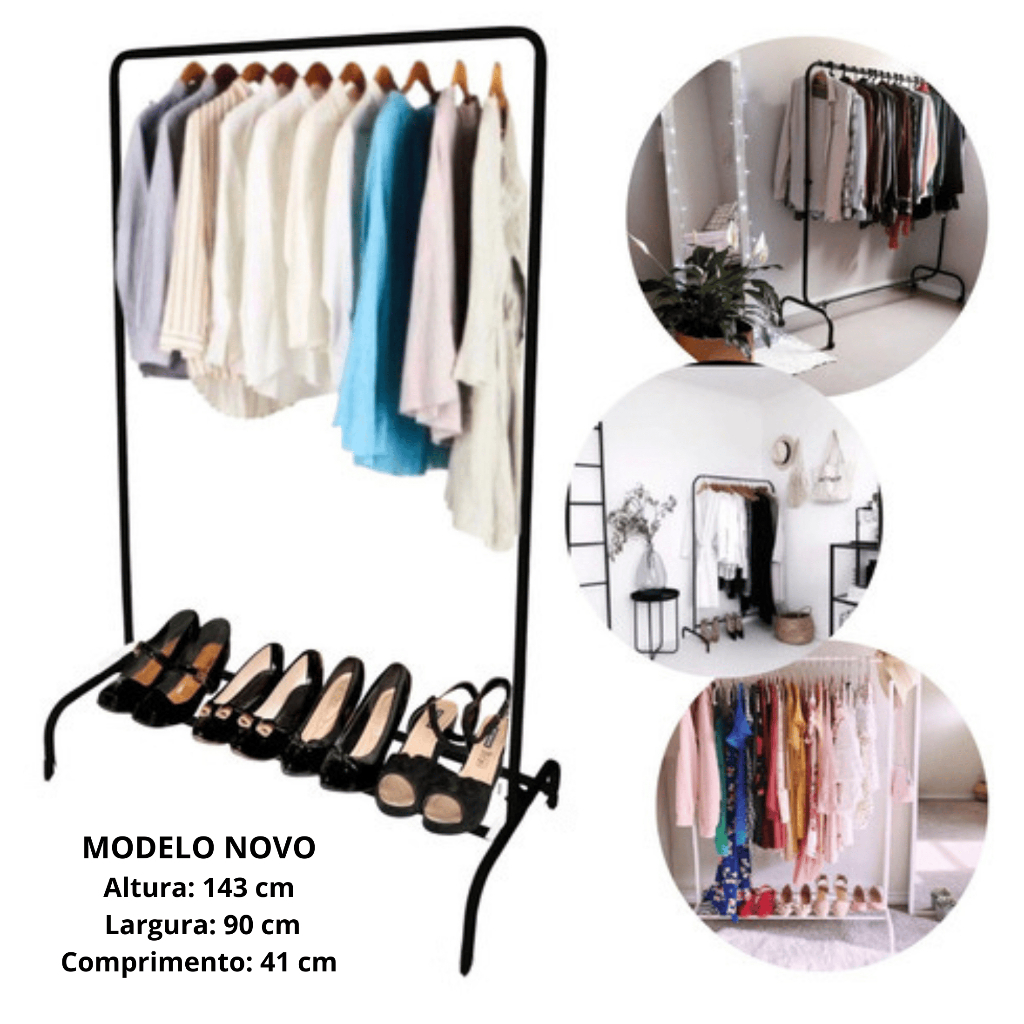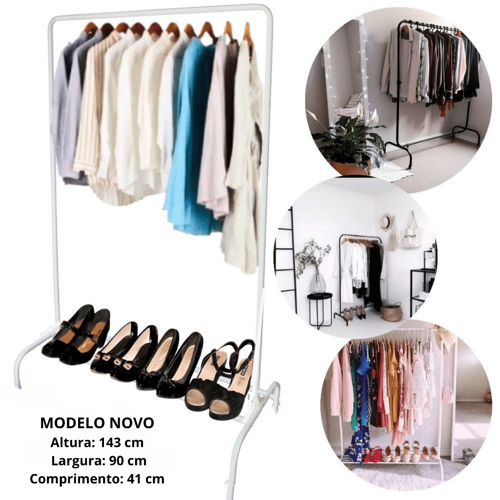 Organizador De Roupas Cabideiro De Chão Arara Com Sapateira Em Aço Desmontável