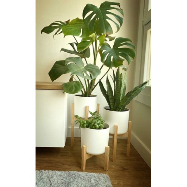 suporte de chão em madeira Pinus para vaso cachepot