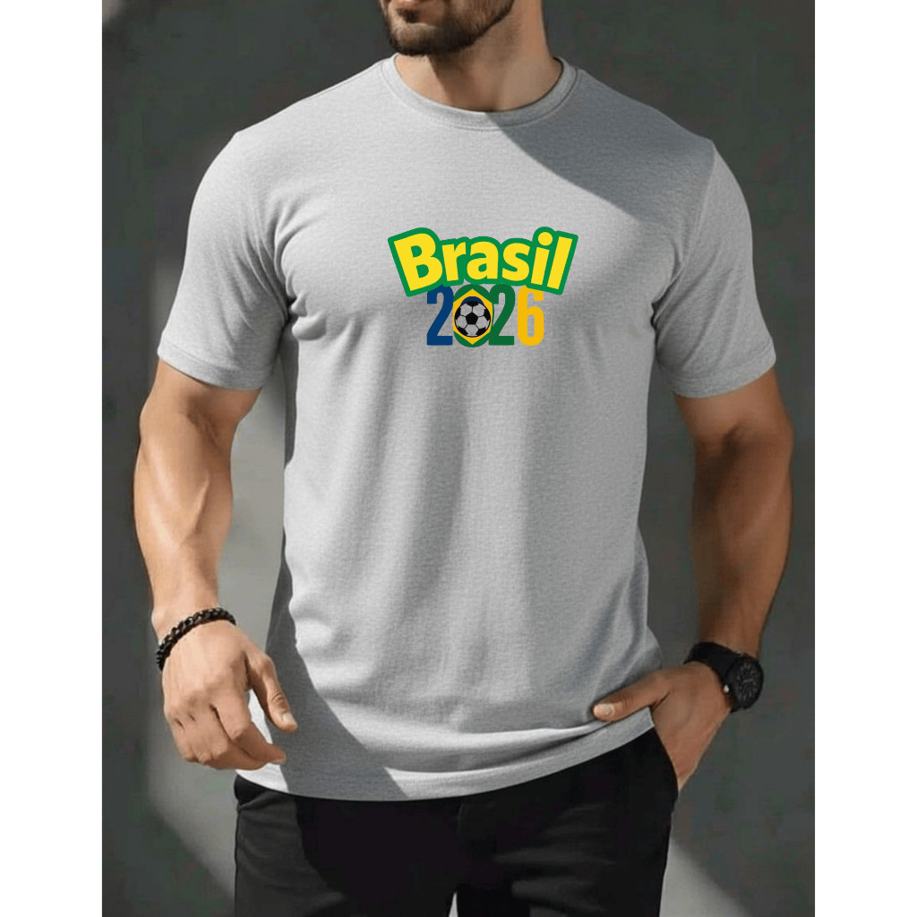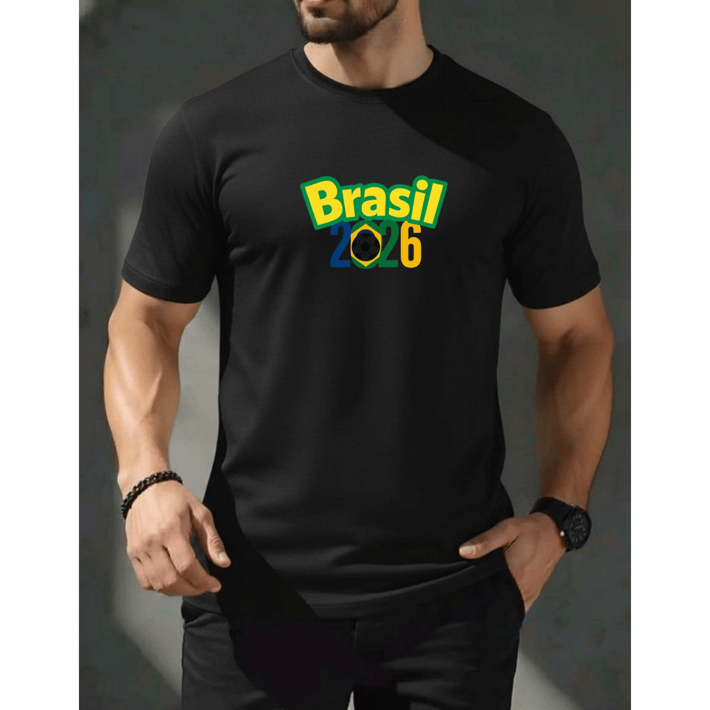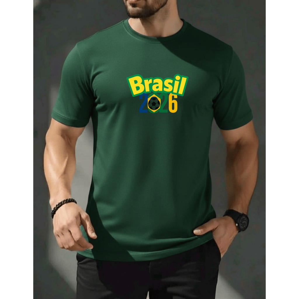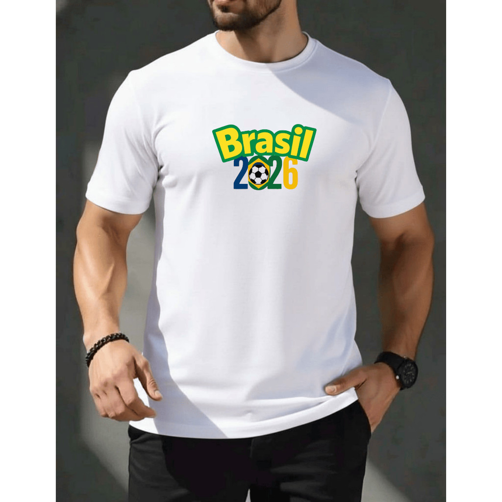 Blusa camiseta brasil 2026 masculina camisa 100% algodão